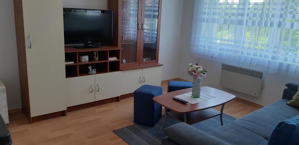 Apartament Ivana znajduje się w budynku mieszkalnym na II. podłoga. Pod oknem apartamentu znajduje się bezpłatne miejsce parkingowe. Mieszkanie składa się z dwóch sypialni, łazienki, kuchni z jadalnią, salonu. Dysponuje on również balkonem z widokiem na ogród. Przed wejściem do apartamentu znajduje się sejf na klucze (samodzielne zameldowanie/wymeldowanie), bezpłatne Wi-Fi, pralka. w kuchni piekarnik elektryczny, płyta grzewcza, lodówka, czajnik, sztućce, komplet sztućców, komplet naczyń kuchennych, podstawowe przyprawy. w łazience pralka, suszarka do włosów, komplet ręczników dla każdego gościa. Centrum jak i główny plac miasta oddalone są od apartamentu o około 300 metrów. Sklep spożywczy i piekarnia znajdują się 20 metrów od apartamentu. Obok budynku znajduje się ładnie urządzona kawiarnia.