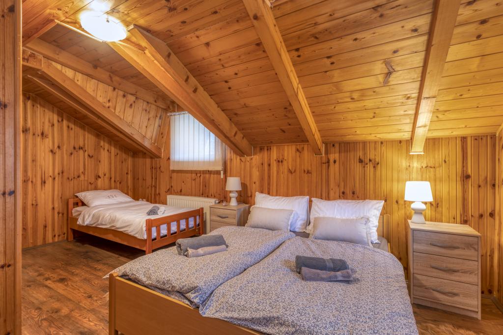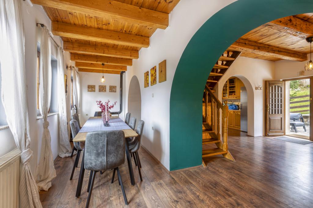 Dom wakacyjny położony jest w Parku Przyrody Velebit, zaledwie 35 minut od morza i 1 godzinę od Parku Narodowego Jezior Plitwickich. Nieruchomość jest odizolowana, z idyllicznym widokiem na las i Velebit. Na nieruchomości znajdują się 3 budynki. Dom na 3 piętrach, garaż i mały drewniany domek z dużym kominkiem i drewnianym stołem. W domu doświadczysz przyjemnej atmosfery z wieloma drewnianymi elementami i wygodnymi meblami. Na parterze znajduje się duży salon, kuchnia i łazienka. Piękne drewniane schody prowadzą na pierwsze piętro, gdzie znajdują się 4 bardzo wygodne pokoje oraz łazienka. W piwnicy znajduje się pokój gier ze stołem do bilarda, piłkarzykami i rzutkami. Wnętrze całego domu jest starannie urządzone, ze wszystkim, czego potrzeba do maksymalnego komfortu i relaksującego pobytu.