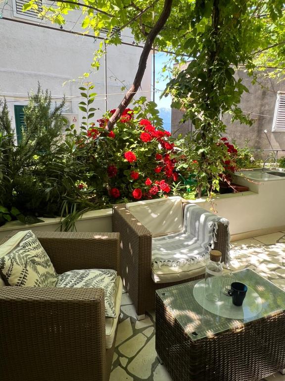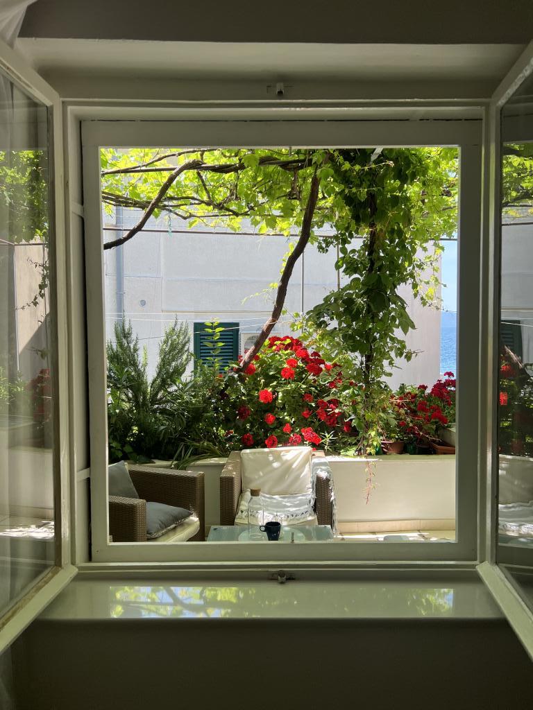 Apartament w kamienicy w starej części miasta Graz. Położony 2 minuty spacerem od plaży, morza i centrum miasta, gdzie wszystkie bary i restauracje, ale jest ukryty od tłumów i przechodniów. Obiekt znajduje się w zagłębionej części starego miasta, tuż obok portu. Jest klimatyzowany i posiada wifi, znajduje się na parterze z dużym tarasem z widokiem na morze.
