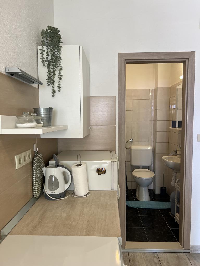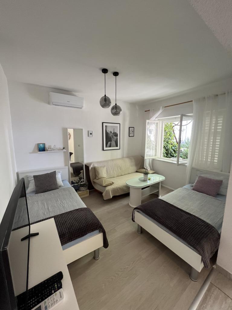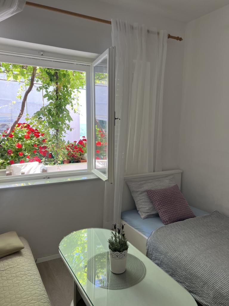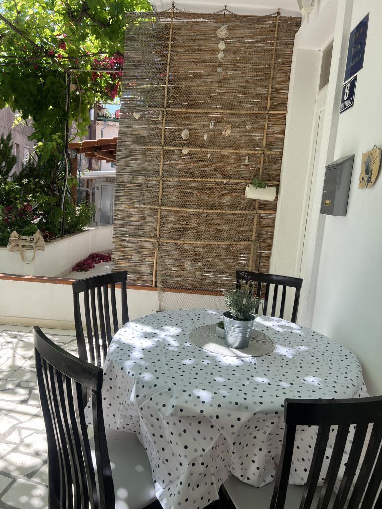 Apartament w samym centrum Gradac, nowocześnie umeblowany z klimatyzacją, w pełni wyposażoną kuchnią, bardzo czysty, z dużym, zadaszonym tarasem. Do morza w linii prostej 15 metrów, do głównego placu w Gradac i dalej do promenady 20 metrów. Teo był świetnym, pomocnym gospodarzem. W połowie naszego pobytu wszystkie ręczniki i pościel zostały wymienione. Rada dla przyszłych gości: nie ufajcie nawigacji Google, gdy dotrzecie do Gradac - Teo jest nawigacją. Szczerze polecam ten apartament.