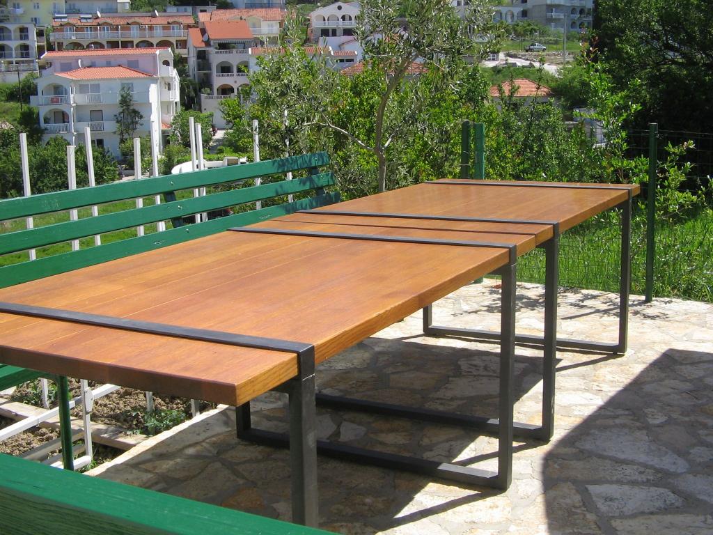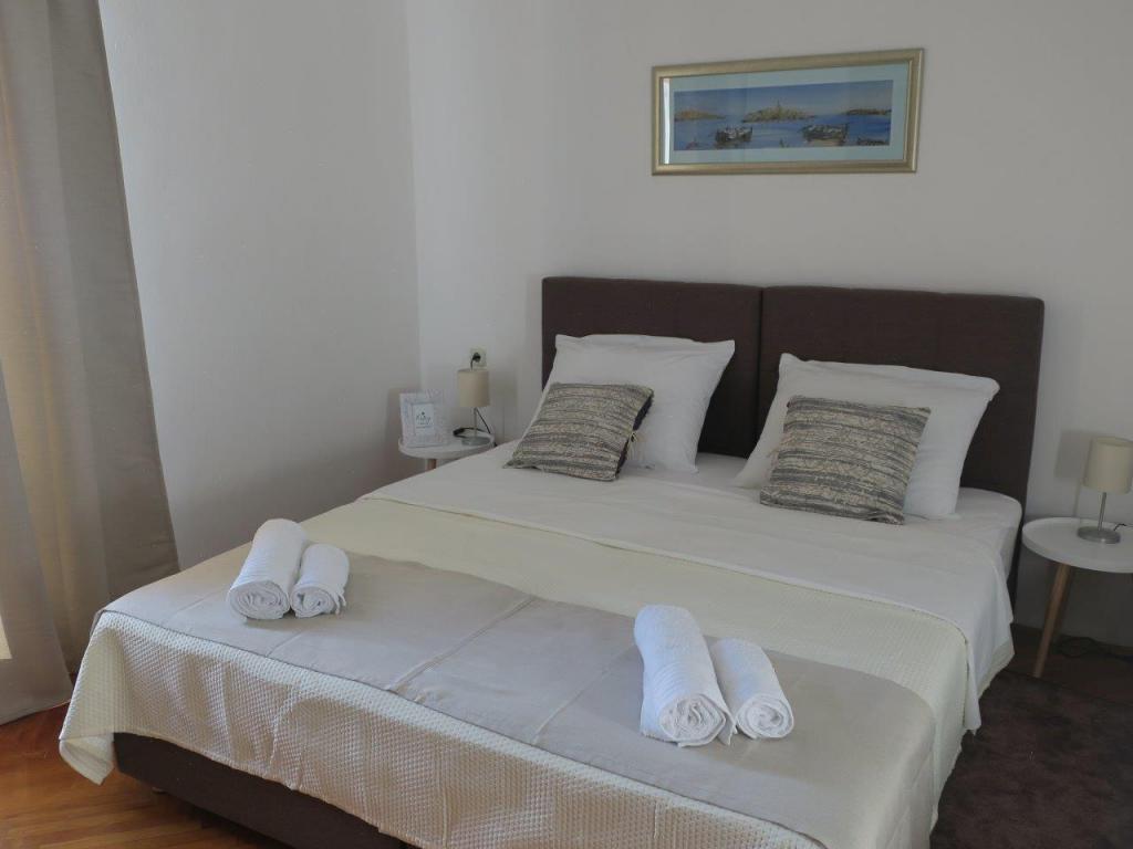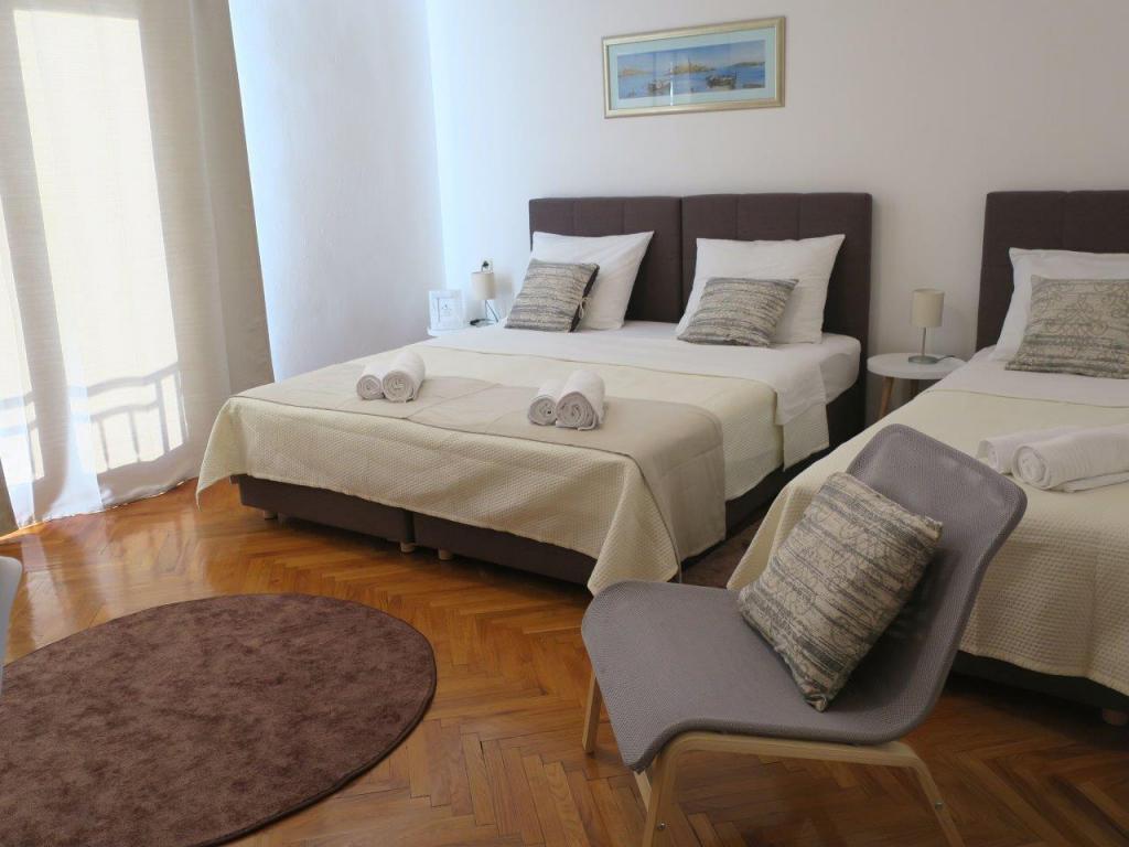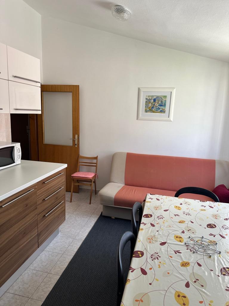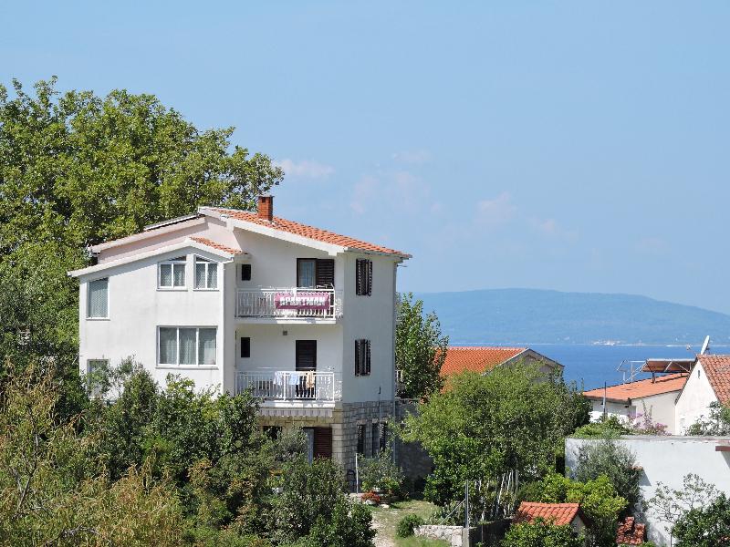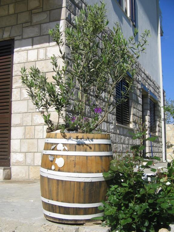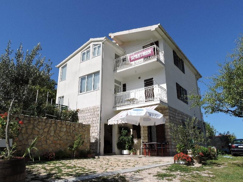 Apartament 100 m2 dla 8 1 osób. Apartament posiada trzy oddzielne sypialnie (jedna dwuosobowa i dwie trzyosobowe), dwie łazienki, kuchnię z jadalnią oraz dwa balkony z pięknym widokiem na morze i okolicę. Wszystkie pokoje wyposażone są w klimatyzację. Goście mogą również korzystać z grilla ze stołem i ławami do spożywania posiłków. Parking dla gości jest bezpłatny.