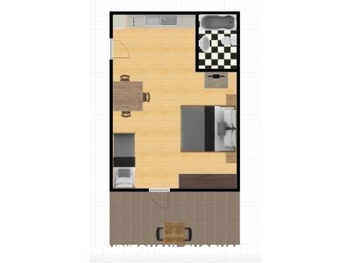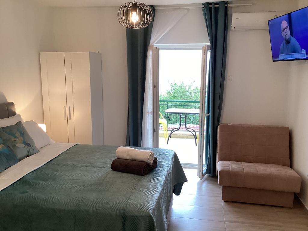 Piękny apartament dla dwojga, widoki do zapamiętania. Balkon, na którym spędziliśmy cudowne chwile oglądając zachód słońca nad pięknym Adriatykiem. Gospodarze są mili i pomocni, nie nachalni, co jest miłe.