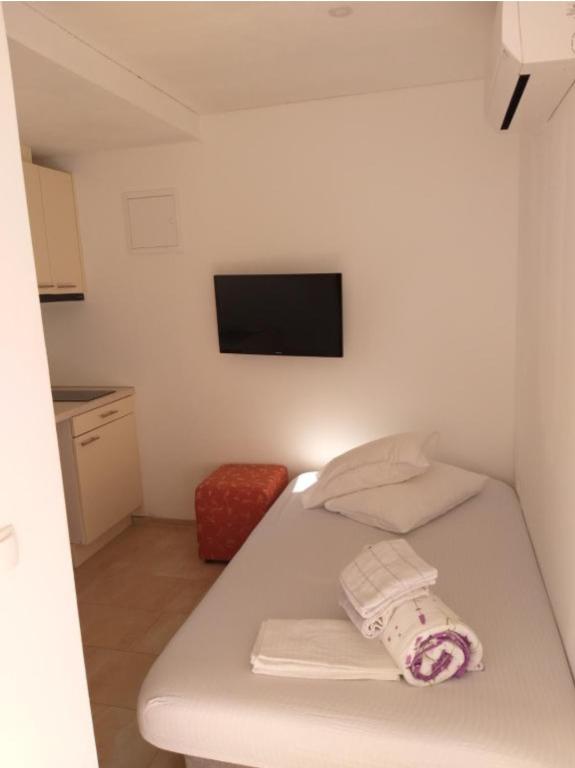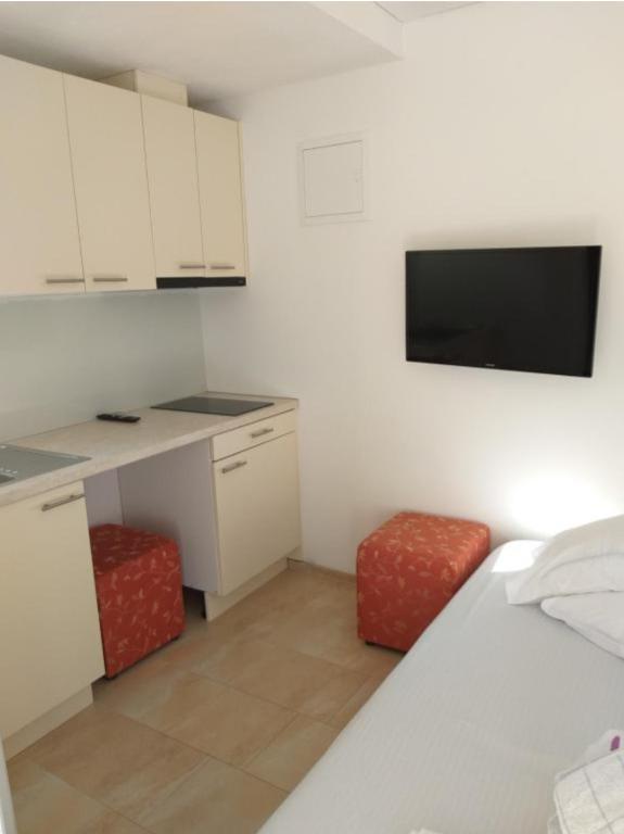 Apartamenty Kolumbo Ciesz się pobytem w apartamentach Kolumbo, idealnie położonych zaledwie kilka minut spacerem od pięknej kamienistej plaży, głównego placu, pizzerii i kawiarni. Obiekt oferuje trzy apartamenty. Wszystkie są identycznie wyposażone i oferują: klimatyzację i bezpłatne Wi-Fi, telewizję satelitarną, prywatną łazienkę, wyposażoną kuchnię z płytą grzejną, kuchenką mikrofalową, czajnikiem i lodówką. Układ apartamentów: Parter: Dwa apartamenty z łatwym dostępem. Pierwsze piętro: Apartament z tarasem i widokiem na morze. Parking dla wszystkich gości. Wyjątkowy bonus w naszej restauracji: Jako nasi goście, otrzymujesz 10% zniżki na lunch i kolację w naszej rodzinnej restauracji Marina Restaurant. Ciesz się świeżymi, lokalnymi specjałami w bardziej przystępnej cenie.
