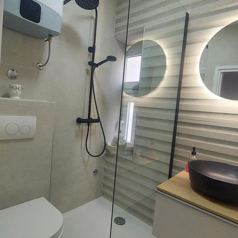 Opłata jest wliczone w cenę. Dokument potwierdzający rezerwację przy rezerwacjiOferujemy także wyposażenie dla dzieci, jeśli gość tego potrzebuje. Na życzenie (przenośne łóżeczko dziecięce). Parasole na mieszkanie. Usługi pralnicze na życzenie. Dodatkowe sprzątanie na życzenie. Jednostki zakwaterowania posiadają kuchnię, sypialnie, łazienkę i cały inny sprzęt, jakiego potrzebuje gość. Przy budynku dostępne są dwa miejsca parkingowe, pozostałe dwa miejsca znajdują się w odległości 2 min samochodem, 5 min pieszo - właściciel ustala harmonogram parkowania w zależności od rezerwacji. Na podwórku znajduje się kuchnia letnia, grill, część wypoczynkowa, sprzęt do wieszania prania, miejsce do przechowywania sprzętu plażowego, rowerów, hulajnogów. Prysznic na świeżym powietrzu jest przeznaczony wyłącznie do użytku po przyjeździe