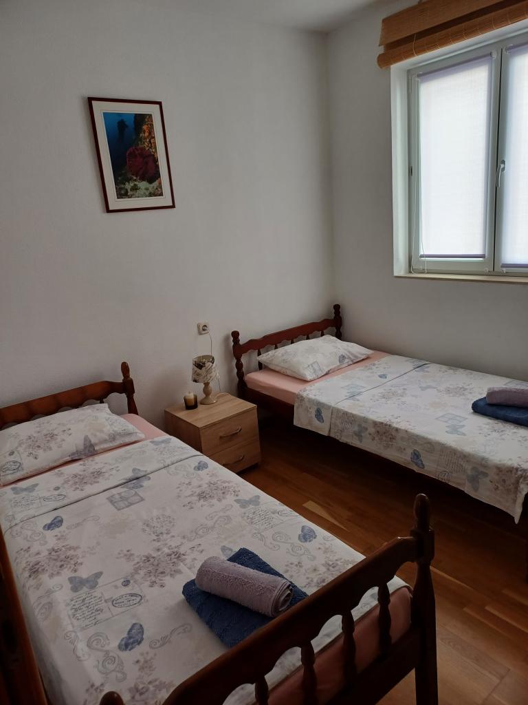 Apartament Lina to w pełni wyposażone mieszkanie w zacisznym miejscu blisko centrum. To jest 3 minuty spacerem do plaży i tyle samo do centrum. Znajduje się na pierwszym piętrze prywatnego domu i składa się z pokoju dziennego połączonego z kuchnią, jednej sypialni z podwójnym łóżkiem i jednej sypialni z 2 pojedynczymi łóżkami oraz łazienki. Posiada również balkon z widokiem na morze. Jest wyposażone we wszystkie podstawowe sprzęty AGD (lodówka, piekarnik, kuchenka) i obejmuje klimatyzację oraz telewizor i rozkładaną sofę w salonie. W cenie miejsce parkingowe 200 m od apartamentu, ale po przyjeździe w celu wyładowania bagażu można podjechać samochodem 30 m od apartamentu. Gospodarz znajduje się w tym samym miejscu i po przyjeździe powita gości, pokaże apartament i parking oraz przekaże klucze.