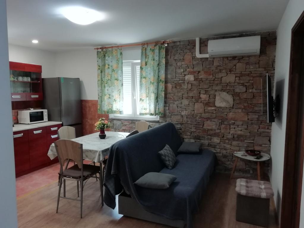 bardzo schludny, ma wszystko co potrzebne, nawet butelki zwrotne jeśli chcesz kupić napój, który wymaga wymiany pustych opakowań na pełne. Duży balkon z widokiem, morze dosłownie 5 metrów od mieszkania. Gospodarz sympatyczny, dbający o szczegóły, nienarzucający się, ale zawsze dostępny dla gości. Tutaj będziesz mieć pełną prywatność i maksymalny komfort. Rekomendacja dla krajowej oliwy z oliwek, którą można porównać do wielokrotnie nagradzanej. PS mój mąż też jest zadowolony w sumie 10