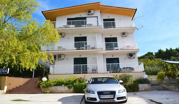 Villa Slavena znajduje się w spokojnej turystycznej części miejscowości Gradac, 5 minut spacerem od plaży, centrum, restauracji i innych udogodnień potrzebnych do aktywnego wypoczynku letniego. , Dom składa się z 7 apartamentów typu studio, z których 1 jest dwuosobowy, 4 trzyosobowy, 2 czteroosobowy, a na szczycie domu znajduje się 1 duży apartament dla 6-10 osób z 3 oddzielnymi sypialniami, 2 toaletami, kuchnią i balkonem wokół mieszkania z piękny widok na morze. W apartamencie znajduje się również pralka i zmywarka do naczyń. Apartamenty są w pełni i nowocześnie wyposażone. Każdy apartament posiada klimatyzację, bezprzewodowy dostęp do Internetu, telewizję satelitarną. antena. Oprócz zawartości apartamentu goście mają do dyspozycji dziedziniec na kolacje i spotkania towarzyskie na zewnątrz przed domem oraz korzystanie z kominków, a przed domem prywatny parking tylko dla gości.