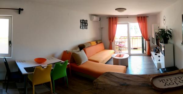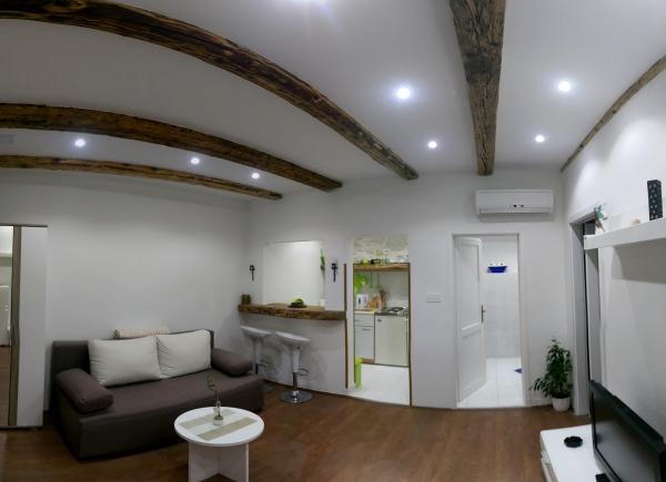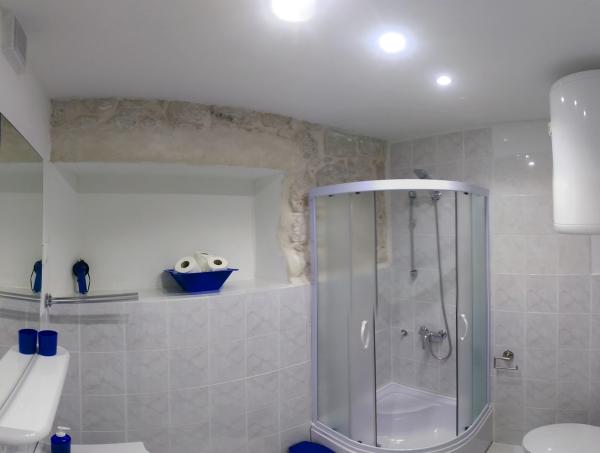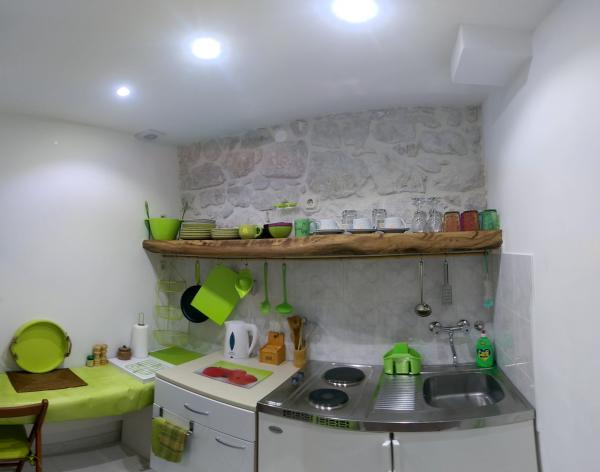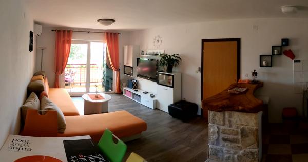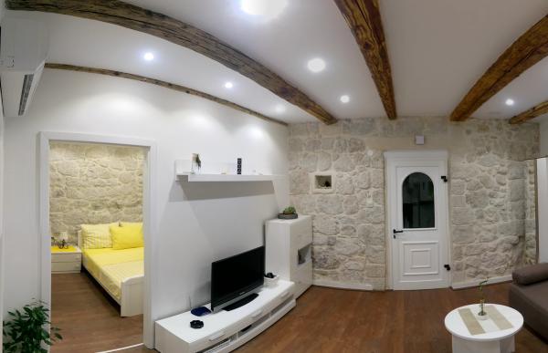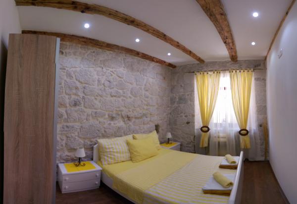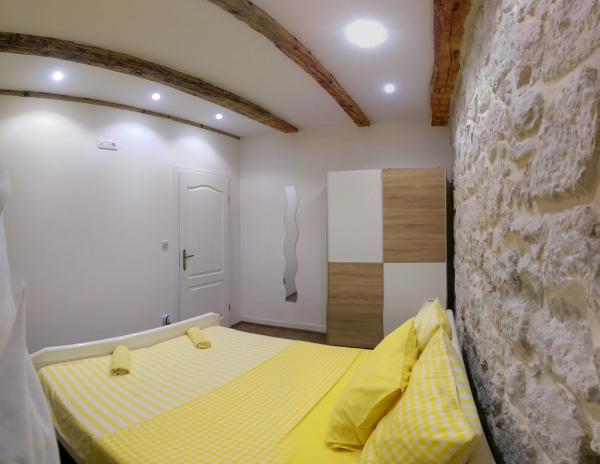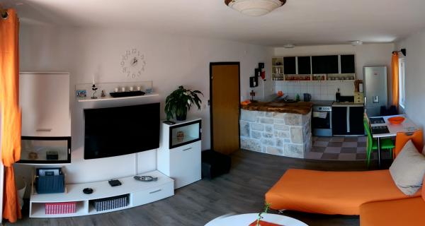 Dom z dwóch nowych mieszkań. Obiekt położony jest 5-6 minut spacerem w dół od centrum Graz, plaża, morze, restauracje, kawiarnie i sklepy. Pierwszy apartament (2 2) Mieszkanie w części kamiennym domu na parterze, całkowicie odnowiony w starym stylu regionalnym. Posiada jedną sypialnię z podwójnym łóżkiem oraz pokoju dziennego z kanapą, która rozciąga wymiary innym dużym łóżkiem dla dwóch osób. Posiada również kuchnia i łazienka z prysznicem. Jest on wyposażony w klimatyzację, internet, telewizor LCD, telewizję satelitarną. Posiada własny ogród ze stołem i krzesłami. Drugi apartament (4 2) znajduje się na pierwszym piętrze, posiada dwie sypialnie z dwoma łóżkami, duży pokój dzienny z rozkładaną sofą, dużym dużej wielkości w pełni wyposażona kuchnia, łazienka i balkon ze stołem i krzesłami. Mieszkanie ma Internetu, klimatyzację, telewizor LCD i telewizję satelitarną. Parking znajduje się na tyłach domu i jest bezpłatny. Wszyscy goście mogą korzystać cały ogród, kuchnia odkryty, pokój z pralką, grill i duży stół z krzesłami