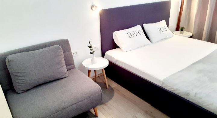 Nowo wyremontowane apartamenty wyposażone w kuchnię, klimatyzację, smart TV, wszystko w cenie bez ukrytych kosztów. Odległość od morza to tylko 3 minuty spacerem, bezpłatny parking, WI-FI, netflix, klimatyzacja i opłata klimatyczna, mile widziane.