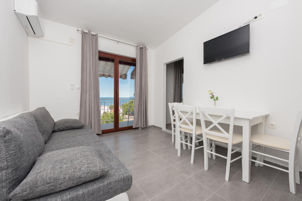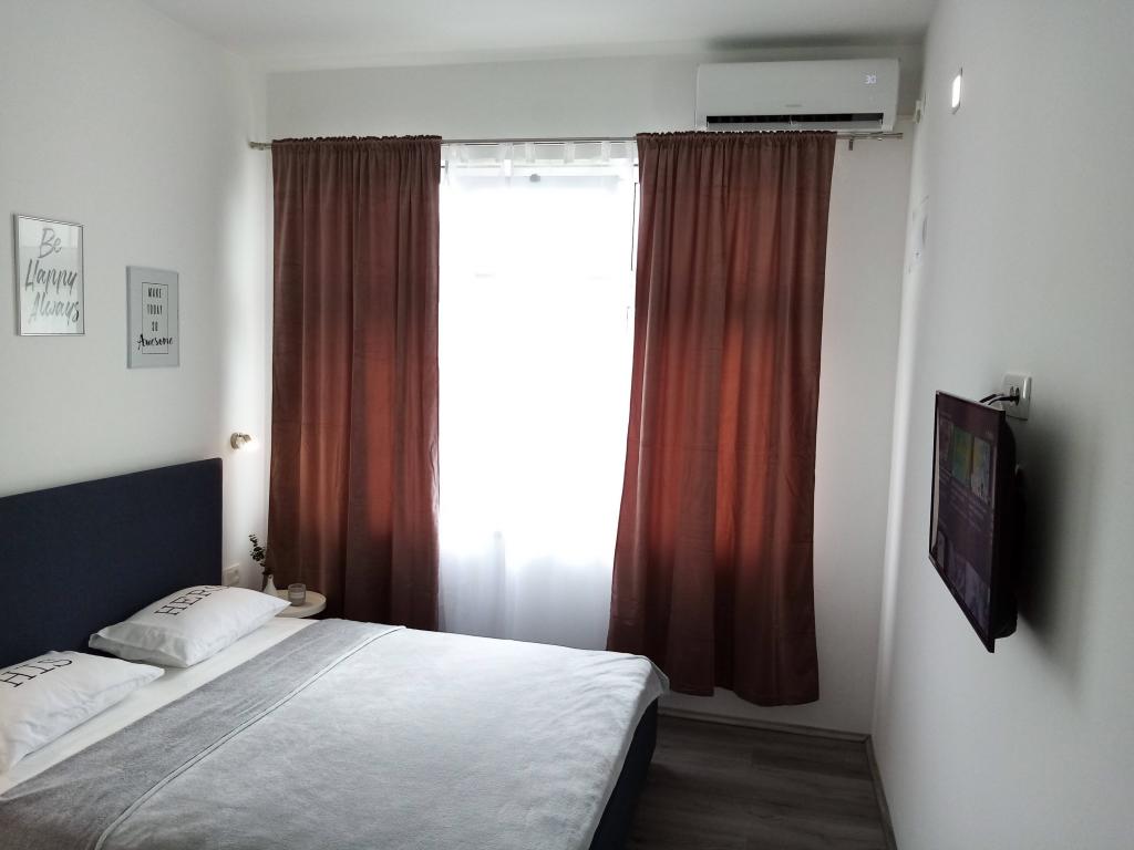 Wszystko zgodne z opisem, szczerze polecam, bardzo mili i mili gospodarze. Mieszkanie posiada 2 wyjścia na balkon, jedno z sypialni i drugie z salonu. Klimatyzator jest w salonie, działał dobrze, chłodzi przy temperaturach 36 stopni, ale spaliśmy przy otwartych oknach. Okolica jest bardzo cicha, jedynym hałasem są samochody odbierające rano śmieci i dzwony kościelne. Z balkonu roztacza się piękny widok na morze i wzgórze, na którym znajduje się kościół, nic nie zasłania tego widoku. Dużym atutem jest przestronna kabina prysznicowa. W kuchni znajdują się wszystkie podstawowe sprzęty. Jedyny mały mankament to to, że kratka wentylacyjna z łazienki wychodzi na korytarz prowadzący do innych mieszkań, ale w niczym to nie przeszkadza. Wszystko jest w porządku, nic nie jest uszkodzone. Wi-Fi - czasami były problemy, czasami zwalniało lub przestało działać, ale zawsze można było wykonać kopię zapasową zdjęć i filmów w ciągu nocy, ale nie nadaje się do pracy lub przesyłania strumieniowego (Netflix, Viaplay). Parking znajduje się na ulicy przed domem, wąski, standardowy dla tej części Chorwacji. Na plażę można dojść przez teren hotelu, szczególnie polecam przyjechać teraz, gdy hotele są remontowane i jest tam znacznie mniej ludzi.