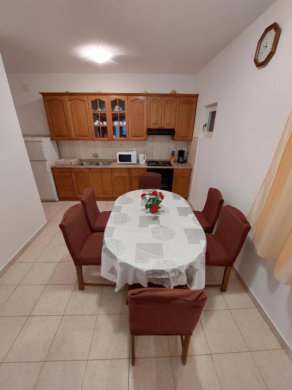Apartament Anči znajduje się w rodzinnym domu z przestronnym tarasem z widokiem na morze w spokojnej miejscowości Grebaštica niedaleko Šibenika. Grebaštica to mała miejscowość między Šibenikiem a Primoštenem, położona w cichej zatoce z wyjątkowo czystym morzem i gęstym lasem sosnowym wzgórza Jelinjak i zatoki Oštrica. Miejsce posiada wszystkie potrzebne udogodnienia. Miejsce jest idealne do wypoczynku i relaksu, oferuje możliwość wynajmu łodzi, turystyki pieszej, rowerowej i tym podobnych. Apartament Anči oferuje Państwu zakwaterowanie w 1 kwaterze: Apartament 1. - od 6 do 7 osób Kwatera jest wyposażona w standardowe wyposażenie niezbędne do wypoczynku. Goście mają do dyspozycji bezpłatny parking, duży taras, ogrodzony dziedziniec, prysznic na świeżym powietrzu i grilla. W przypadku wszystkich pytań jesteśmy do Państwa dyspozycji.