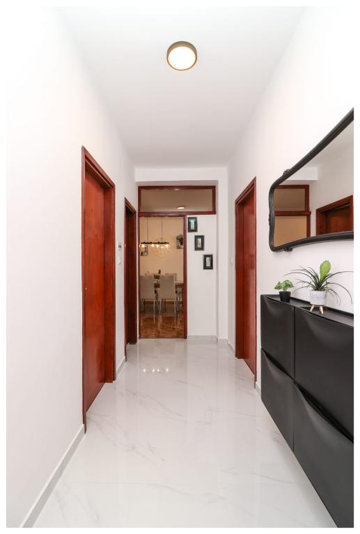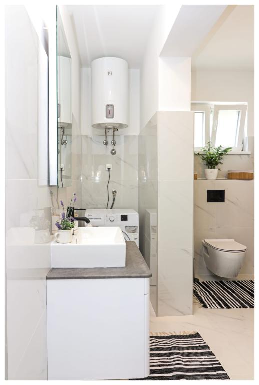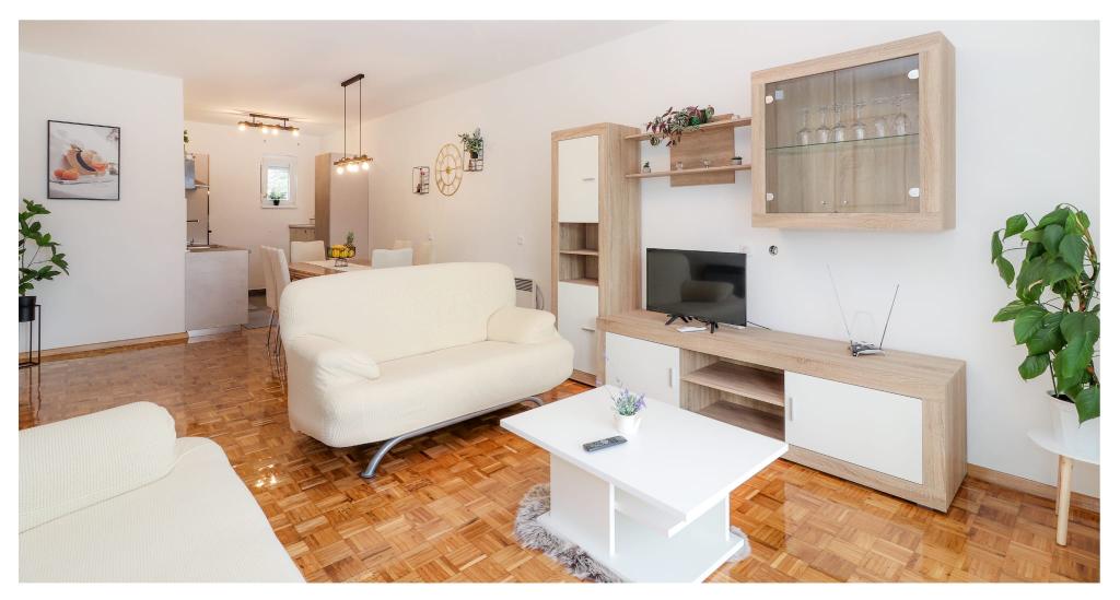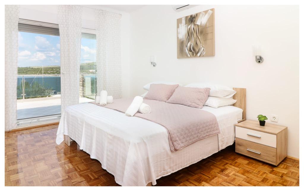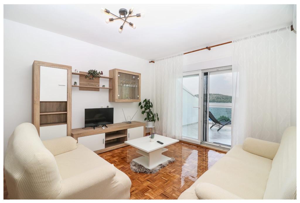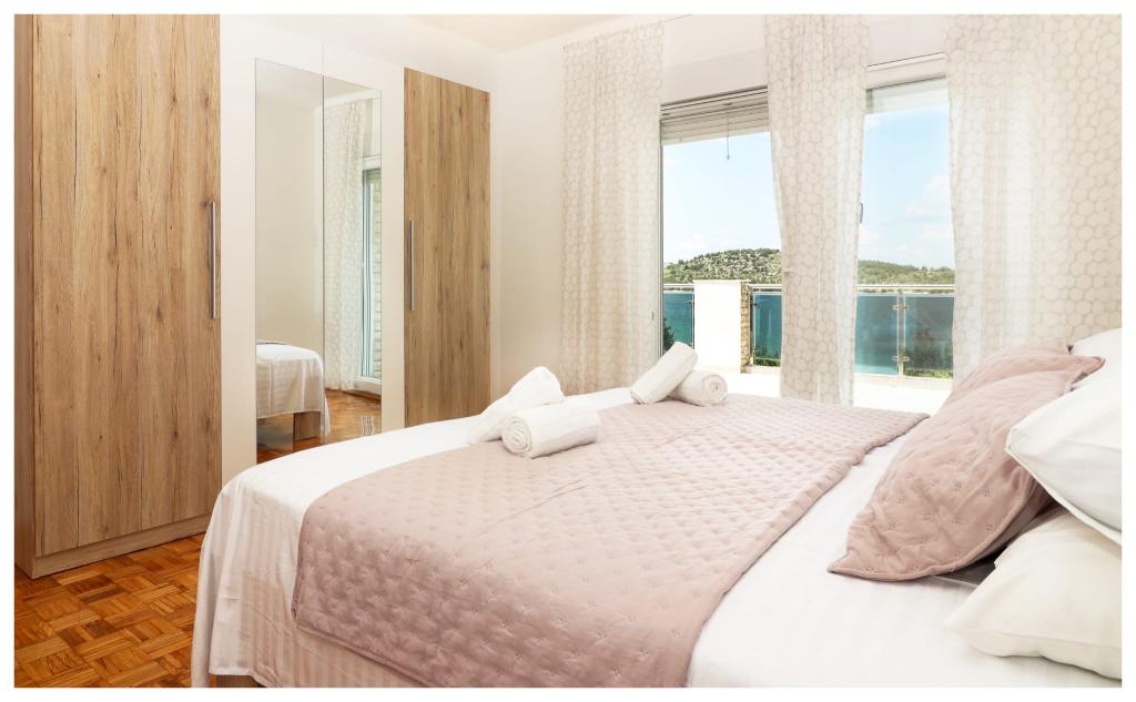 Ciesz się wakacjami w nowoczesnym apartamencie położonym w pierwszym rzędzie do morza, zaledwie 30 metrów od krystalicznie czystego Morza Adriatyckiego. Apartament położony jest w spokojnej miejscowości Šparadići na pięknej Riwierze Szybenik, idealnym miejscu na relaks i ucieczkę od miejskiego zgiełku. Przestronny taras o powierzchni 40 m² z panoramicznym widokiem na morze jest idealnym miejscem na delektowanie się poranną kawą lub wieczornym zachodem słońca. Apartament jest w pełni wyposażony, by zapewnić komfortowy pobyt - oferuje telewizor Smart TV, bezpłatne Wi-Fi, prywatny parking oraz nowoczesną kuchnię ze zmywarką, kuchenką mikrofalową i ekspresem do kawy. Goście mają również dostęp do nowoczesnej łazienki z kabiną prysznicową, co dodatkowo zwiększa komfort pobytu. Przyjedź i poczuj prawdziwą atmosferę Dalmacji, korzystając z komfortu nowoczesnego zakwaterowania!
