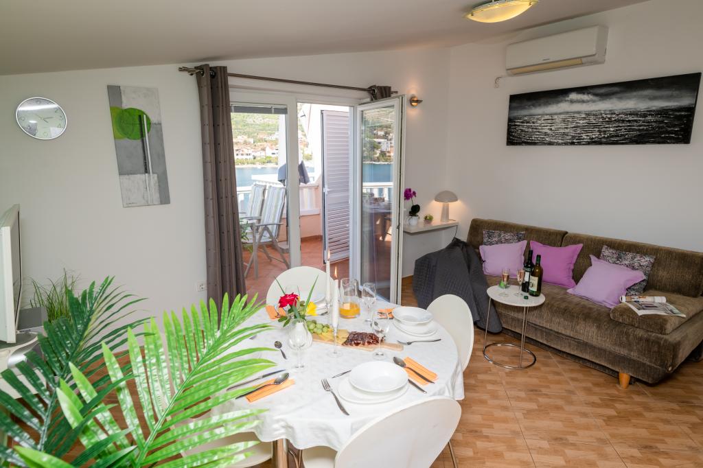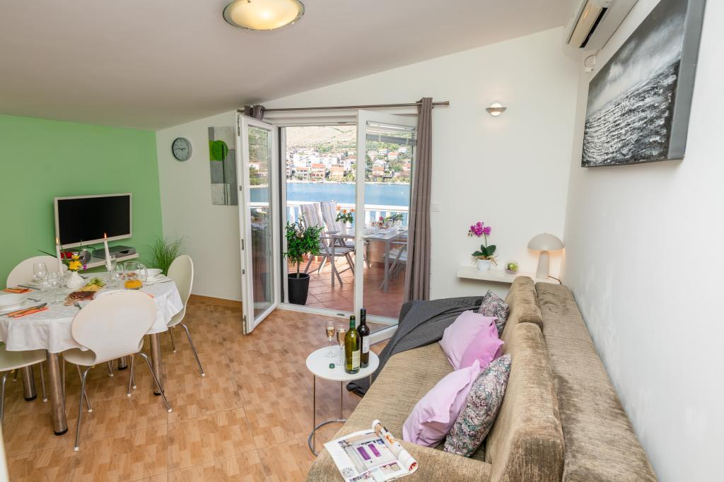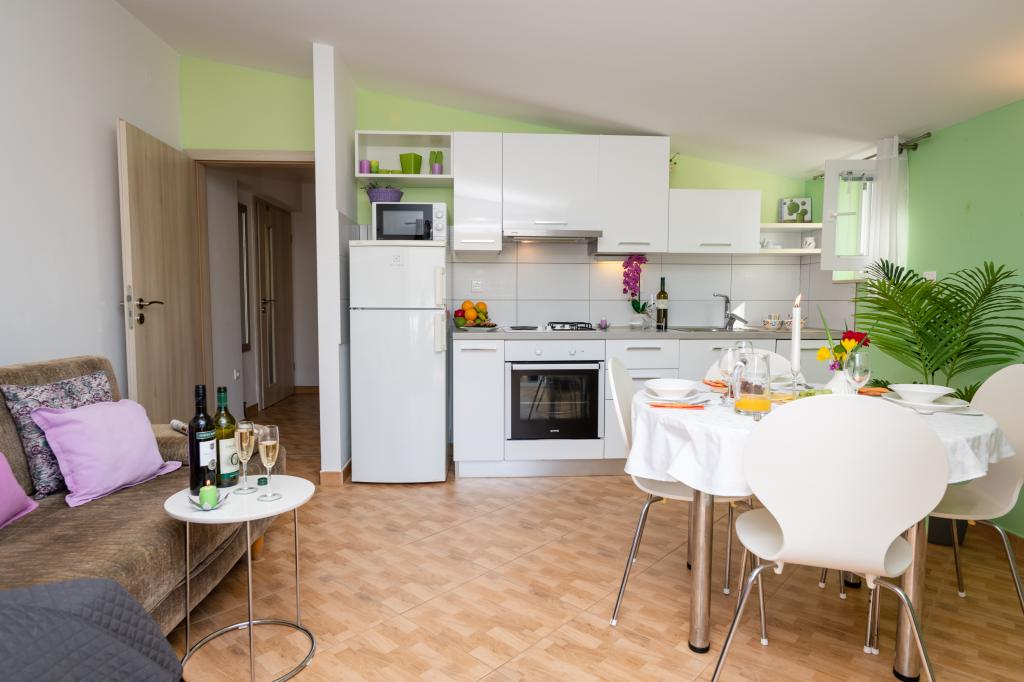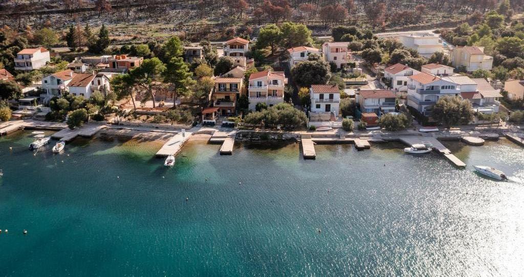 Nieruchomość położona jest w pierwszym rzędzie od morza, u podnóża wzgórza Jelinjak, na południowym brzegu długiej, pięknej zatoki, pomiędzy miejscowościami Grebaštica i Šparadići. Osady te połączone są główną drogą, a także dobrze utrzymaną ścieżką wzdłuż morza, idealną do spacerów, joggingu i jazdy na rowerze. Nieruchomość jest nowo wybudowana. Apartament posiada taras z widokiem na morze i miejscowość Grebaštica. Plaża jest betonowo-kamienista, z miejscami w cieniu drzew oliwnych.