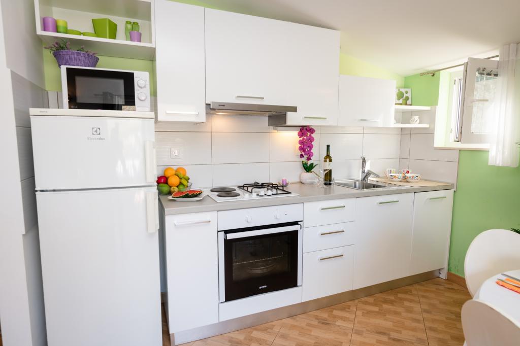 Do dyspozycji gości apartamentu jest zmywarka i pralka. Dostępne jest miejsce do cumowania łodzi i miejsce na przyczepę kempingową, a także parking dla samochodu. Usługi te są bezpłatne. Do dyspozycji gości apartamentu jest łóżeczko dziecięce, parasole i leżaki. Na dziedzińcu domu znajduje się miejsce na grilla. W apartamencie dostępny jest bezpłatny internet (Wi-Fi). Ze względu na odległość od głównej drogi, goście apartamentu nie muszą martwić się o bezpieczeństwo swoich dzieci. W godzinach porannych istnieje możliwość zakupu podstawowych produktów spożywczych w bezpośrednim sąsiedztwie apartamentu, korzystając z autobusu. Zdecydowanie polecamy widok na cały archipelag ze szczytu wzgórza Jelinjak, na które można dojechać samochodem lub rowerem. W pobliżu znajdują się również dwa parki narodowe: Krka i Kornati. Zapraszamy!