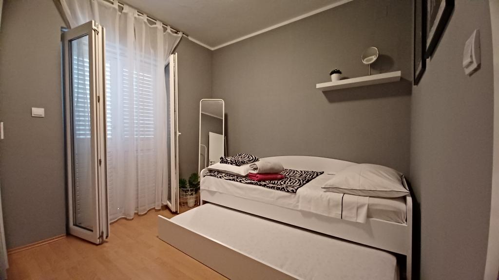 Apartamenty Ana usytuowane są w samym sercu Dalmacji, w Grebastica słynie z krystalicznie czystej wody i plaż. Otoczony zielonym i czystej natury, z dala od morza około 200 m. W pobliżu znajdują się trzy plaże, dwa żwiru odpowiednie dla rodzin, a zwłaszcza dzieci i jeden skalista nadaje się do bardziej kameralnej atmosferze. Zapaleni rowerzyści napotykają szereg ścieżek rowerowych. Apartament jest klimatyzowany, posiada własny taras z miejscem do siedzenia i wypić poranną kawę lub zachód słońca w godzinach wieczornych. Goście mają bezpłatny parking w podwórzu, jak również bezpłatny dostęp do bezprzewodowego Internetu i telewizję satelitarną. Apartamenty Ana jest dozwolone zwierzęta. Apartament znajduje się w domu rodzinnym. Składa się z nowoczesną w pełni wyposażoną kuchnię, pokój dzienny, sypialnia i łazienka z toaletą, prysznicem i umywalką z lustrem. W pokoju dziennym znajduje się rozkładana łóżko, szafa i inne.