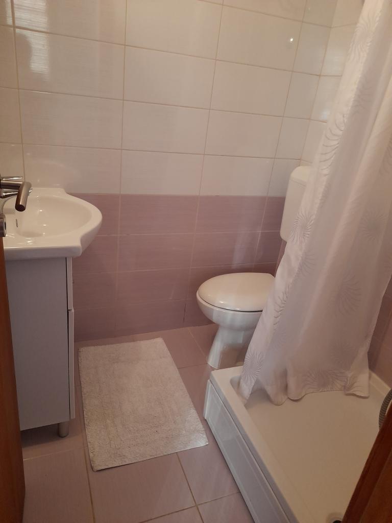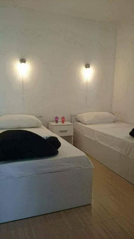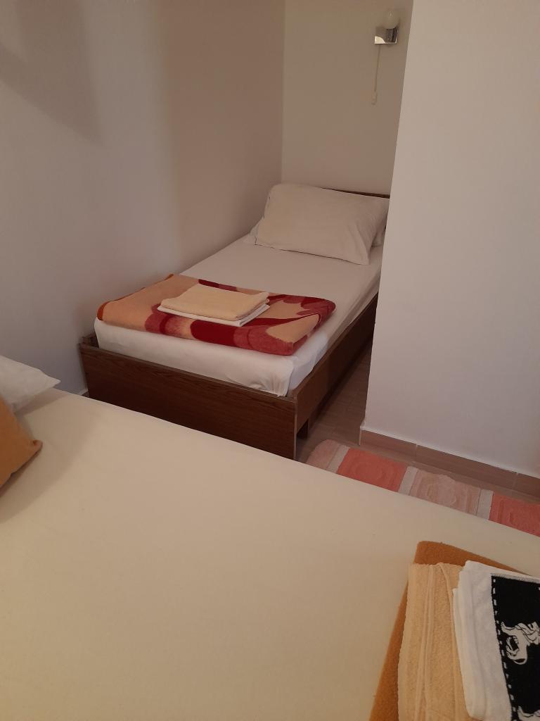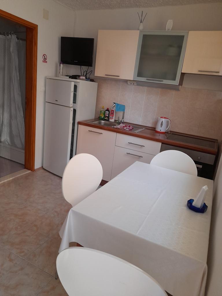 Apartamenty położone 7 metrów od morza dla 7-8 osób, z tarasem o powierzchni 34 m² i widokiem na morze. Apartamenty posiadają kuchnię z przyborami kuchennymi i naczyniami do serwowania, salon z rozkładaną sofą do wypoczynku lub spania, telewizję satelitarną, klimatyzację, dostęp do internetu, 3 sypialnie (2 dwuosobowe i 1 trzyosobowa) z ręcznikami i pościelą, dostawką, łazienką z prysznicem, toaletą i pralką oraz grillem. Na tarasie znajdują się meble ogrodowe dla 8 osób, leżaki, 2 rowery, parking. Plaża znajduje się 7 metrów od apartamentu. Przed apartamentem znajduje się mobilny market (minibus), który zaopatruje nas w podstawowe produkty. To idealne miejsce na wakacje z dziećmi, rodziną lub przyjaciółmi.