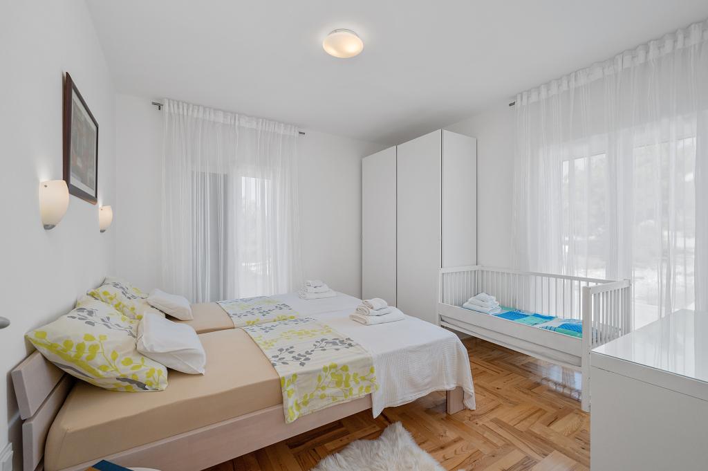 Villa Salvia Adriatica - 4 gwiazdki w dwóch nowych mieszkań na pierwszym i Salvia Adriatica na drugim piętrze, oferuje unikalne doświadczenie wakacje. Każde mieszkanie z 100 m2 posiada dwie sypialnie z łazienkami, kuchnia z niezbędnym wyposażeniem i dużym salonem z przodu, który jest przestronny taras (30 m2) z dużym stołem i hamakiem dla przyjemnego towarzyskich i relaks z widokiem na wybrzeżu Grebastica , w pobliżu wyspy i lazurowe morze. Jest bezpłatny bezprzewodowy dostęp do Internetu, telewizji satelitarnej i naziemnej. Apartamenty są klimatyzowane, z możliwością ogrzewania w chłodniejsze dni. Na podwórku jest wystarczająca liczba miejsc parkingowych. Nasze apartamenty są w pełni przystosowane pokoju dzieci. Z ochroną gniazda i krzesła dla dzieci / podajniki zaoferowania łóżeczko na życzenie.