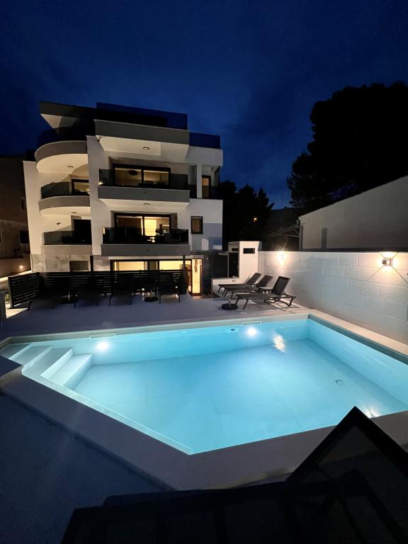 Villa White Pearl położona jest tuż przy plaży w cichej zatoce Grebaštica, zaledwie 15 minut od zabytkowego miasta Szybenik, które jest objęte ochroną UNESCO. Willa została wybudowana w 2023 roku i zawiera 6 luksusowych apartamentów o łącznej pojemności 28 łóżek. Każdy apartament wyposażony jest w wysokiej jakości meble renomowanych marek, a także oferuje bezpłatne WiFi i telewizję satelitarną. Oprócz apartamentów wszyscy nasi goście mają do dyspozycji sezonowo podgrzewany basen zewnętrzny z hydromasażem, leżaki na plaży, sprzęt do grillowania oraz prywatny parking bez dodatkowych opłat. Z balkonów apartamentów roztacza się także piękny widok na morze i basen. Tylko kilka kroków od obiektu znajduje się piękna plaża Banovci, sklepy, restauracje, bary i inne udogodnienia niezbędne do udanych rodzinnych wakacji. Zdecydowanie polecamy Państwu wykorzystanie pobytu w naszym apartamencie na zwiedzanie licznych atrakcji w naszej okolicy i przywoływanie niezapomnianych wspomnień z wakacji.