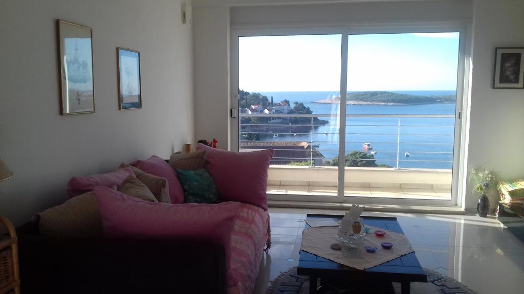 Przestronny apartament typu studio w centrum Hvaru z pięknym widokiem na wyspy Paklińskie, 5 minut spacerem do centrum i molo katamaranów. Położone na ostatnim piętrze trzypiętrowego budynku z osobnym wejściem, w spokojnej części miasta, daje możliwość przyjemnego letniego wypoczynku. W części sypialnej łóżko o wymiarach 140 x 200 cm w przestrzeni o szerokości 160 cm, w drugiej części mieszkania obszerna sofa.