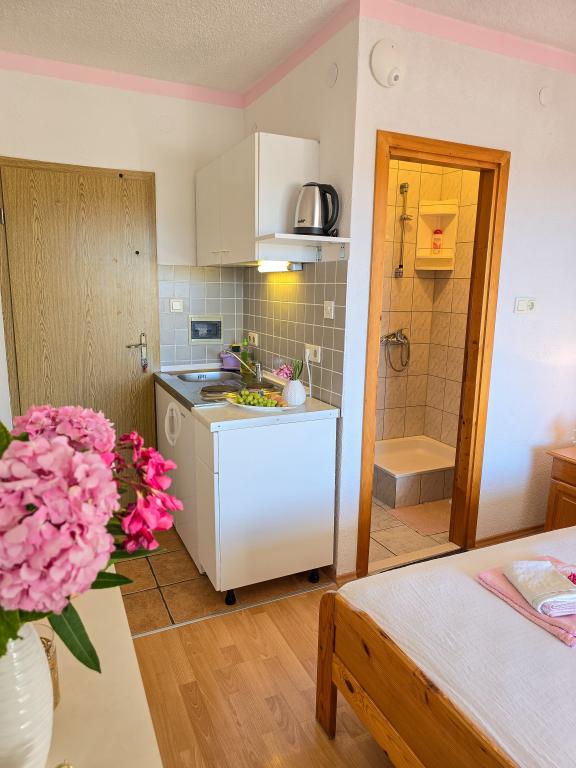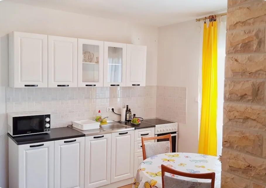 Wielki smjetsaj, wspaniały widok z balkonu, bardzo czyste mieszkań; Bardzo przyjaźni gospodarze, dyskretne i bardzo łatwo dostępne do wszystkich informacji. Spokojna okolica, parking naprzeciwko domu, w pobliżu sklep spożywczy, 15min spacerem do centrum. Plaza w zatoce Pokonji dół piękne, czyste morze, z kilku restauracji, w pobliżu drogi do plaży (strome wielka szkolenia), ale ma drogę, aby dotrzeć samochodem. Niezwykle zadowolony.