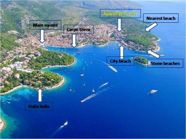 Nowo umeblowane apartamenty znajdują się w rodzinnym domu w spokojnej części Hvaru, 20 minut spacerem od Starego Miasta. A1 (4 osoby) znajduje się na 1. piętrze z dużym tarasem z widokiem na morze i oferuje wspaniały zachód słońca. A2 (4 osoby) znajduje się na parterze na ogrodzonym podwórku z możliwością siedzenia przed nim. Każdy apartament ma jedną sypialnię i rozkładane łóżko w salonie. Parking jest bezpłatny, podobnie jak usługa WiFi. Najbliższa naturalna żwirowa plaża znajduje się w zatoce 200 metrów od hotelu i można do niej dojść pieszo. Druga plaża miejska, żwirowa i kamienista, znajduje się 10 minut spacerem od hotelu. Zakwaterowanie jest odpowiednie na rodzinne wakacje, jest bezpieczne dla dzieci (ogrodzenie), a firma do 8 osób jest mile widziana. Do Hvaru można dotrzeć katamaranem bezpośrednio ze Splitu (1 godzina jazdy samochodem) lub promem (2 godziny jazdy samochodem) przez Stare Miasto, z którego autobusem lokalnym (20 minut jazdy samochodem) do centrum Hvaru. Najbliższe lotnisko znajduje się w Splicie. Katamarany jeżdżą także do Korculi, Mljet i Dubrownika.