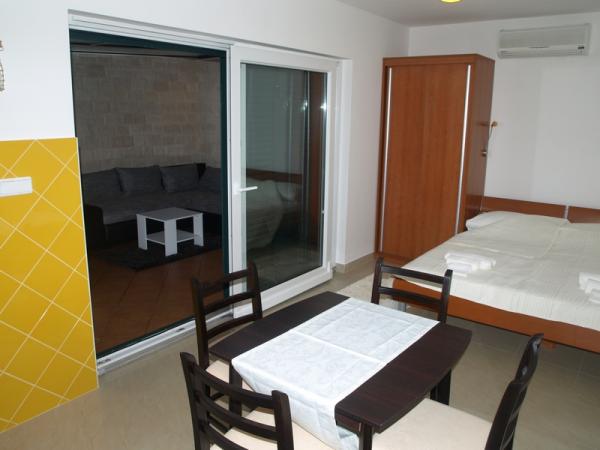 W pełni umeblowany apartament typu studio na parterze, z częściowym widokiem na morze. 5 minut spacerem od najpiękniejszej plaży - Pokonji Arr. Studio - Apartament w jednym pokoju ma sypialną (łóżko małżeńskie), kuchnia i stół jadalny z czterema krzesłami. W innym pokoju to narożny apartament z TV. Kuchnia wyposażona kuchenka, lodówka, ekspres do kawy, kuchenka mikrofalowa, sztućce, itp. .. Łazienka z WC i prysznicem. Z przodu ma mały taras 7m2 ze stołem i krzesłami.