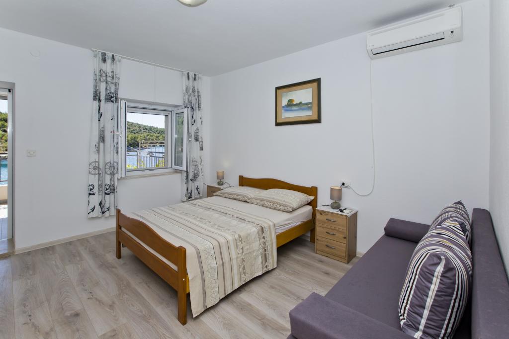 Apartamenty w cichej zatoce 3,5 km od miasta Hvar. Dom położony jest w pobliżu obozu Vira, naprzeciwko tawerny Ringo. Idealne miejsce na spokojne wakacje nad morzem, nieopodal wszystkich atrakcji. Do domu jest po drodze prywatnej, i to jest możliwe uzyskanie dostępu do morza. Dom, w którym znajdują się apartamenty posiada prywatną plażę z leżakami i prysznicem, cumowanie łodzi, schody prowadzą do wejścia. Apartamenty składają się z WC, kuchnia, sypialnia i duży taras, który znajduje się nad morzem. Będziemy omawiać również odkryty grill, naturalny odcień, piękne widoki i prywatny parking. Plaża jest kamienista i zatok niepożądane płaskich kamieni nadaje się do opalania, z dala od niechcianych widoków.