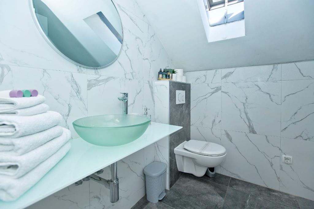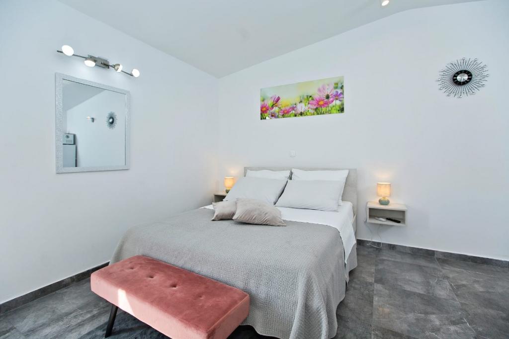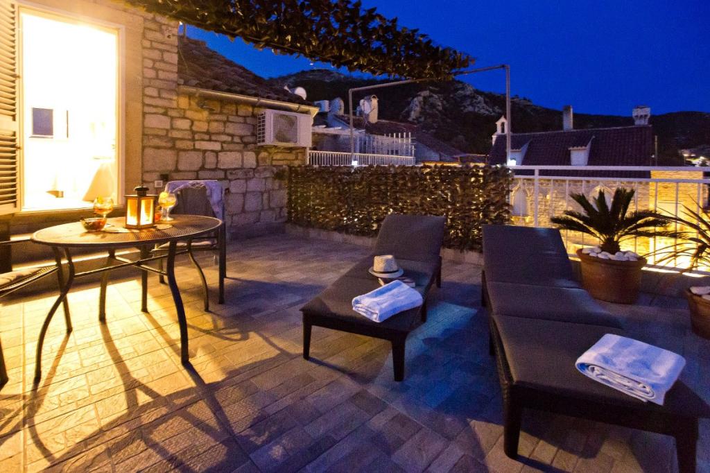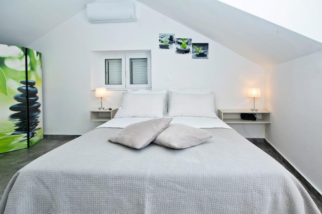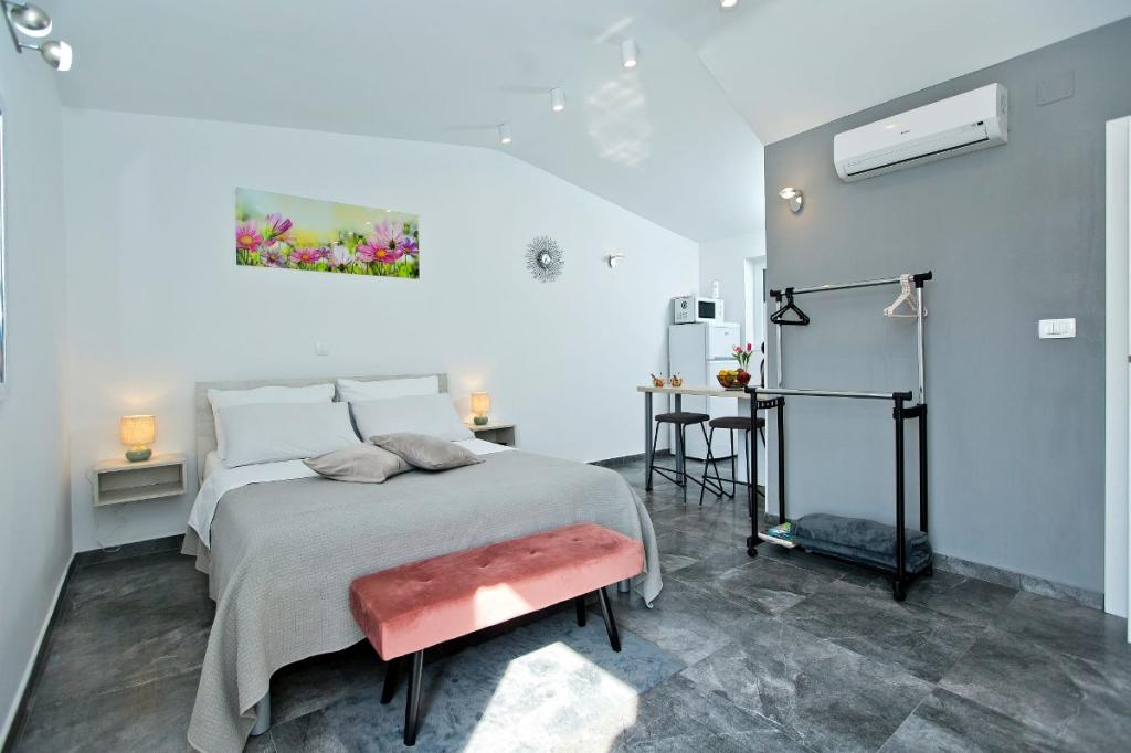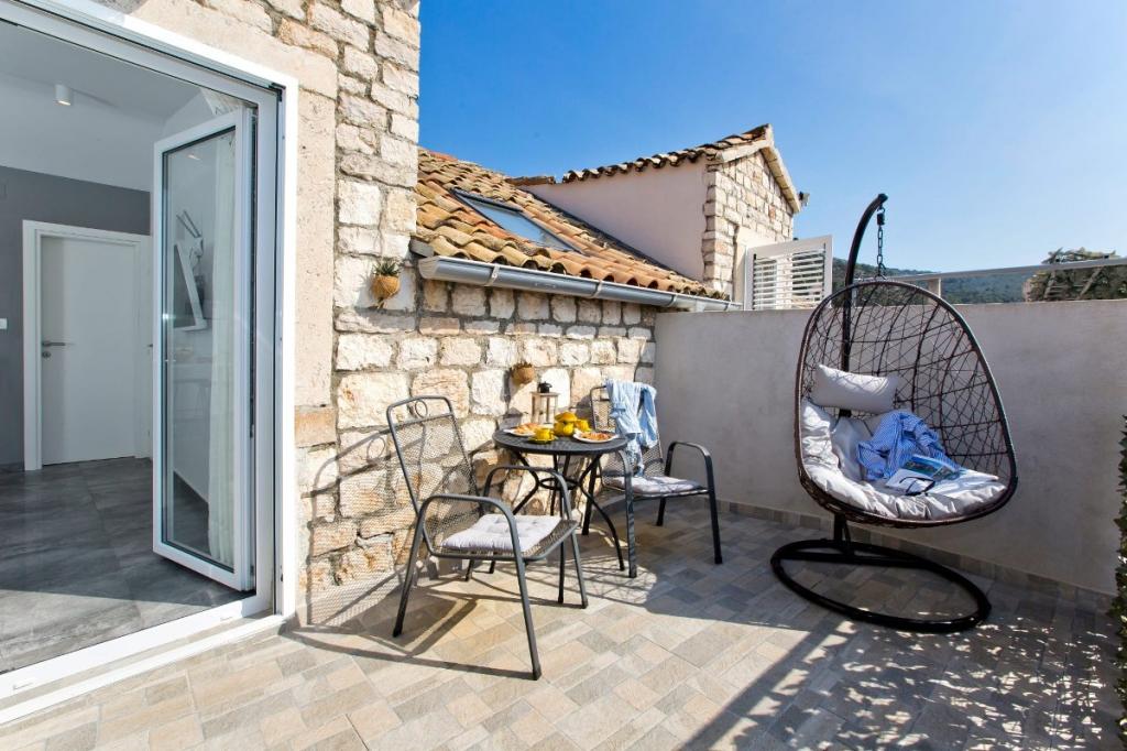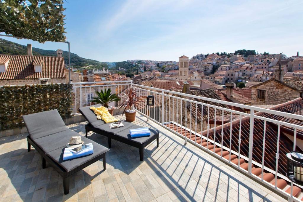 Elegancko urządzone apartamenty typu studio, położone w samym sercu Hvaru, oferują idealne połączenie komfortu i doskonałej lokalizacji. Jasne i nowoczesne apartamenty wyposażone są w wygodne łóżko podwójne (160 × 200), w pełni wyposażoną kuchnię ze wszystkimi niezbędnymi udogodnieniami (lodówka z zamrażarką, czajnik, toster, płyta grzewcza, kuchenka mikrofalowa, zmywarka), łazienki z kabiną prysznicową, klimatyzację oraz prywatne tarasy (stół, krzesła i leżaki ogrodowe) z hipnotyzującym widokiem na starówkę i piękny port Hvar. Odkryj to, co najlepsze w Hvarze, dosłownie na wyciągnięcie ręki: urocze kawiarnie, znakomite restauracje, przytulne śniadaniownie, lokalne butiki i sklepy z pamiątkami. Główny plac miasta z katedrą św. Szczepana i najstarszym teatrem publicznym w Europie znajduje się zaledwie 3 minuty spacerem od Twoich drzwi. Zatrzymasz się w samym centrum Hvaru, a jednocześnie przy idealnie zacisznej ulicy, która zapewni Ci spokojny i przyjemny sen.