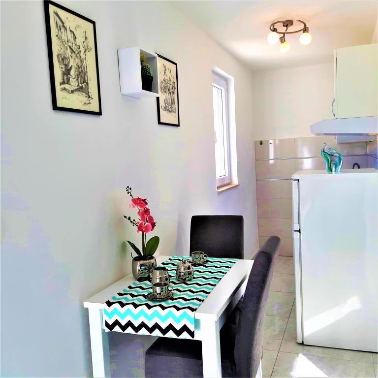 To było nasze drugie miejsce w Chorwacji tego lata, a po kilku awariach (nie bardzo podstawowym, ale denerwujące) w poprzednim miejscu czuliśmy się jak dostał w raju. Po pierwsze, ze względu na łóżku, bardzo nam się podobało! Mieszkanie jest przytulne i dobrze wyposażone. Gospodarze są bardzo mili i gotowi do pomocy. Widok z balkonu - nie idealny (ściana następnego willi), ale wystarczy, przyjemne obserwować morze, wyspy i jachtów. Dość blisko plaży, w pobliżu małego supermarketu. Jednak, aby uzyskać więcej produktów należy udać się do centrum (Konzum, zielony rynek, piekarnie), może to potrwać blisko 20 min w jedną stronę. Moglibyśmy powiedzieć, że podobało nam się wszystko, co w tej willi. Ale akustyka mieszkania nie było bardzo dobre. Żadnych drzwi zamykające się niezwykły hałas, mówiąc ludzie w innych mieszkań są słyszalne. Dzięki, nasze obecne sąsiedzi nie były bardzo głośne. Każdym razie dzięki gospodarzom, mamy wielką przyjemność i polecam ten willi.