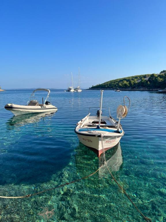 4 km od miasta Hvar znajduje się zatoka Jagodna, zatoka Primitivo Hvar. Prywatne, spokojne i relaksujące miejsce, 200 m od drogi, tylko 20 m od morza! Dom wakacyjny dla 8 osób, 4 pokoje z łazienką, wszystkie pokoje z widokiem na morze i zatokę, duży taras i balkon oraz przestronna kuchnia + grill. Każdy pokój posiada duże łóżko 180x200, oddzielną łazienkę, szafę oraz biurko. Idealne miejsce do wypoczynku i relaksu, wygodne dla rodzin z dziećmi oraz grup przyjaciół, wszystkie zwierzęta mile widziane! Miasto Hvar oferuje wszystkie udogodnienia dla prawdziwej rozrywki, restauracji i pięknych letnich nocy, oddalone jest o 5 minut jazdy samochodem. Nasza zatoczka oferuje spokój i relaks, a także radość z czystego morza i niezapomnianych wschodów i zachodów słońca. Od przebudzenia do cieszenia się pięknym morzem potrzebujesz tylko jednej minuty! Możliwe jest cumowanie wszystkich typów jednostek morskich. Czekamy na Twój przyjazd!