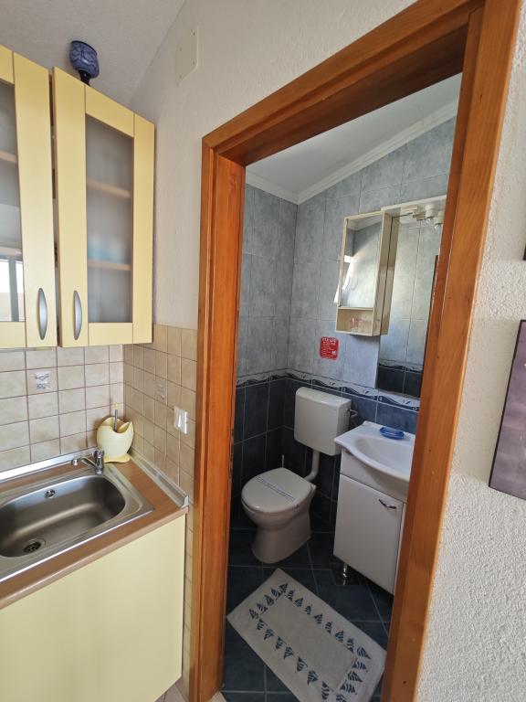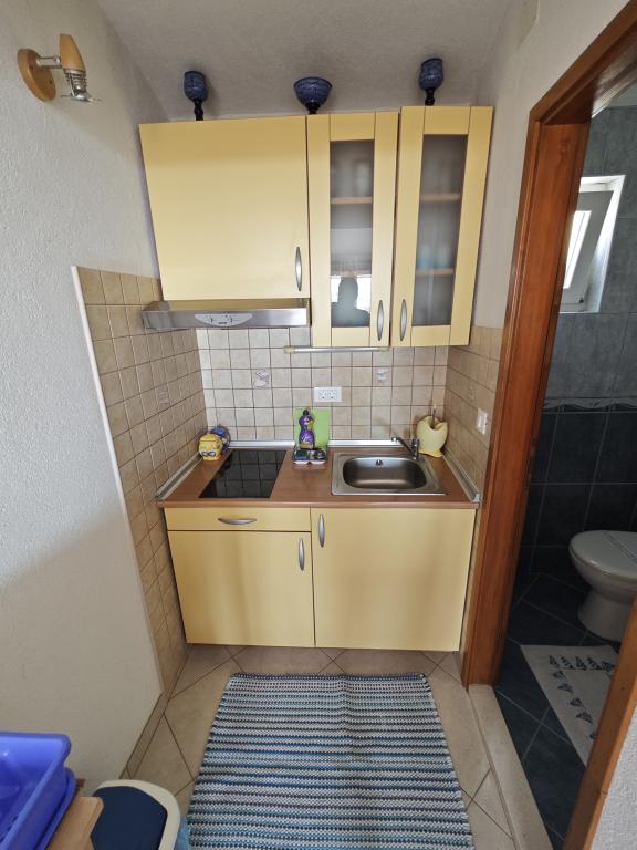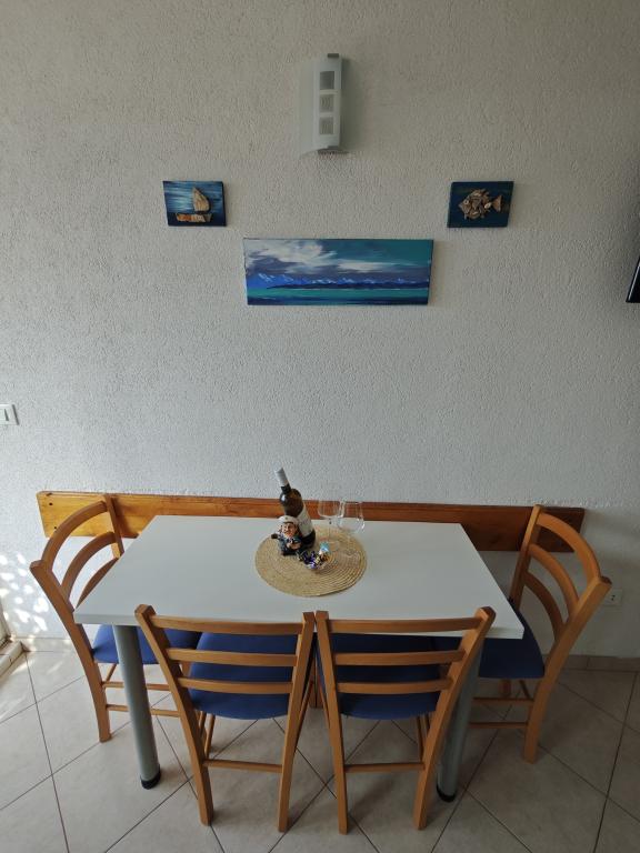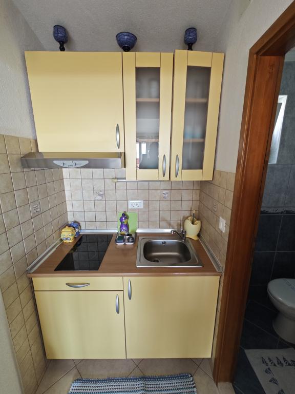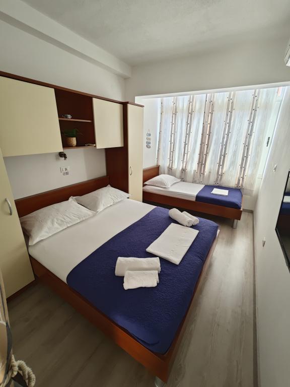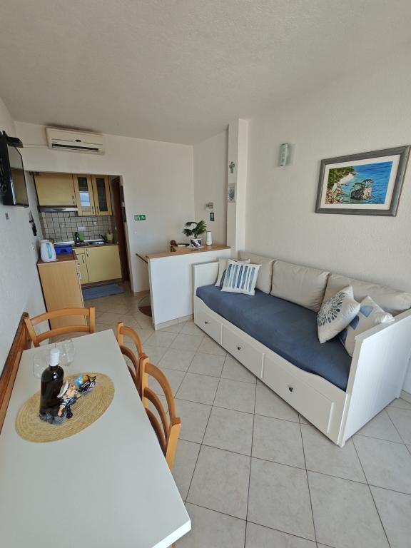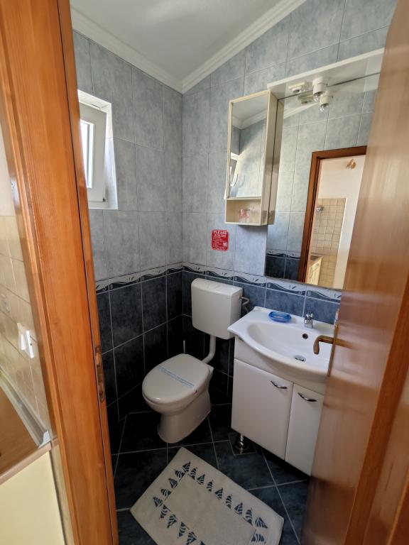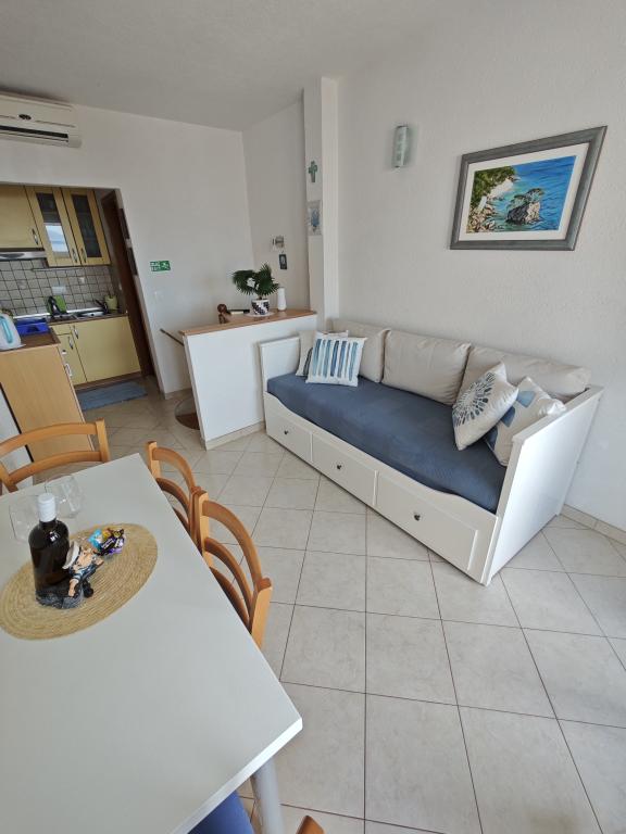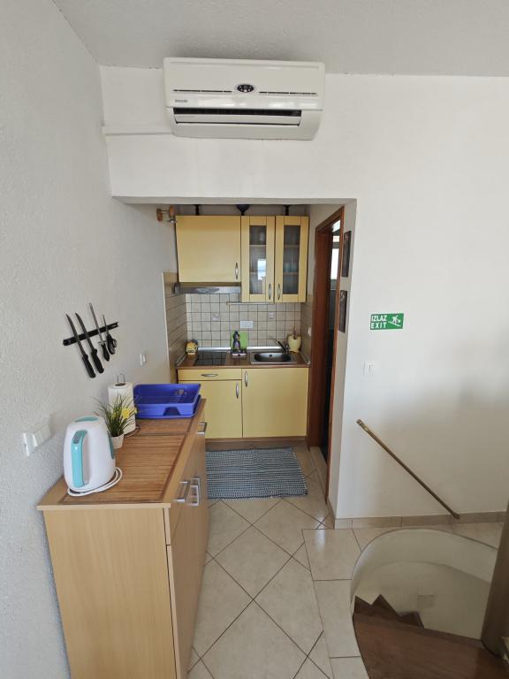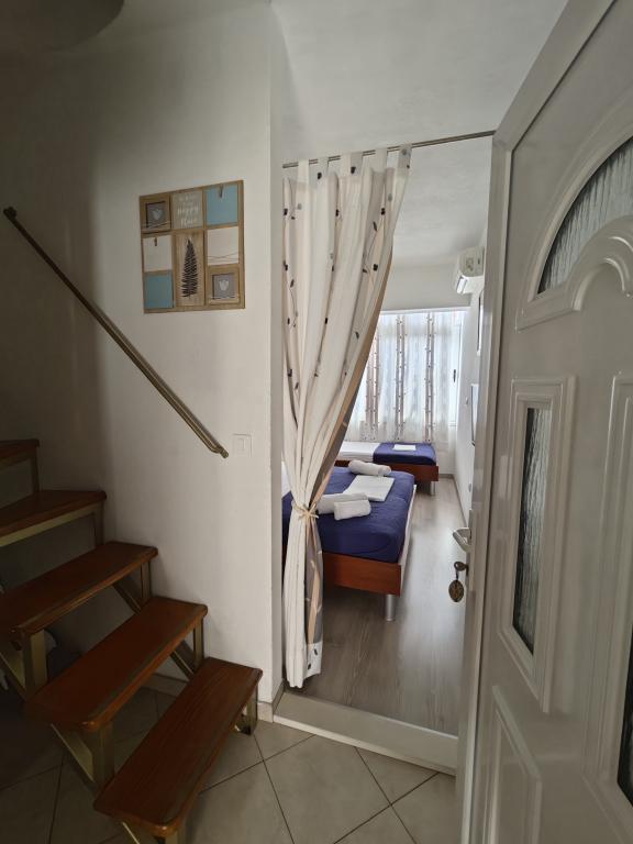 Apartament Blue Lagoon – Twój mały raj nad morzem! ️️ Witamy w Blue Lagoon, uroczym dwupiętrowym apartamencie idealnie położonym zaledwie 30 metrów od głównej plaży i promenady, gdzie można cieszyć się nadmorskimi restauracjami, kawiarniami i pięknymi spacerami. Najbliższy sklep znajduje się zaledwie 20 metrów, a poczta zaledwie 50 metrów od obiektu – wszystko, czego potrzebujesz, jest w zasięgu ręki! Ten przytulny apartament pomieści 3+1 gości, co czyni go idealnym dla par, rodzin lub małej grupy przyjaciół. Układ pomieszczeń: Parter: sypialnia, łazienka z prysznicem i toaletą. Pierwsze piętro: jasny salon, w pełni wyposażona kuchnia, druga toaleta i balkon z pięknym widokiem. Udogodnienia: Klimatyzacja na obu piętrach Telewizor na obu piętrach Darmowe Wi-Fi w całym apartamencie