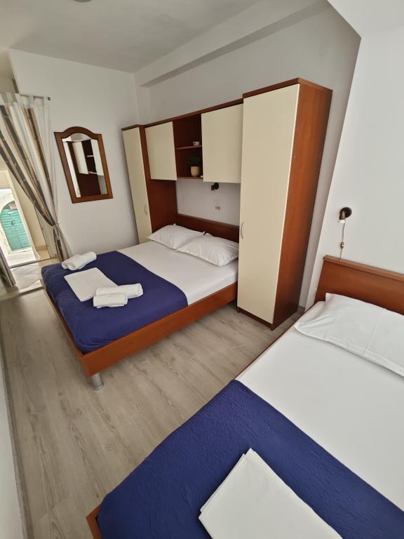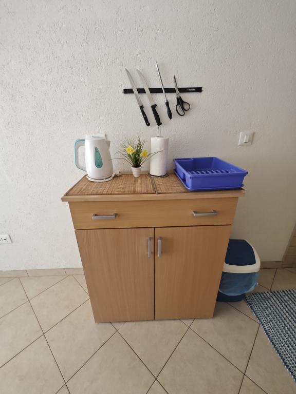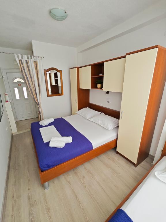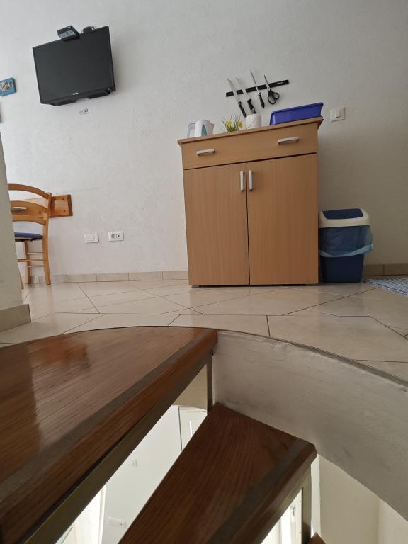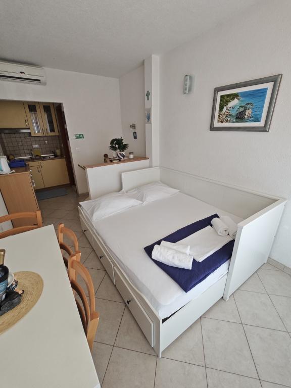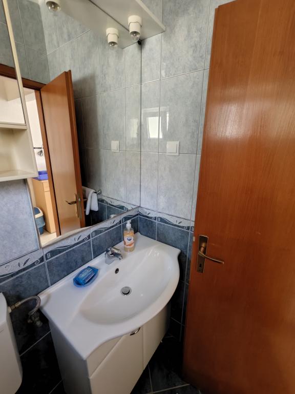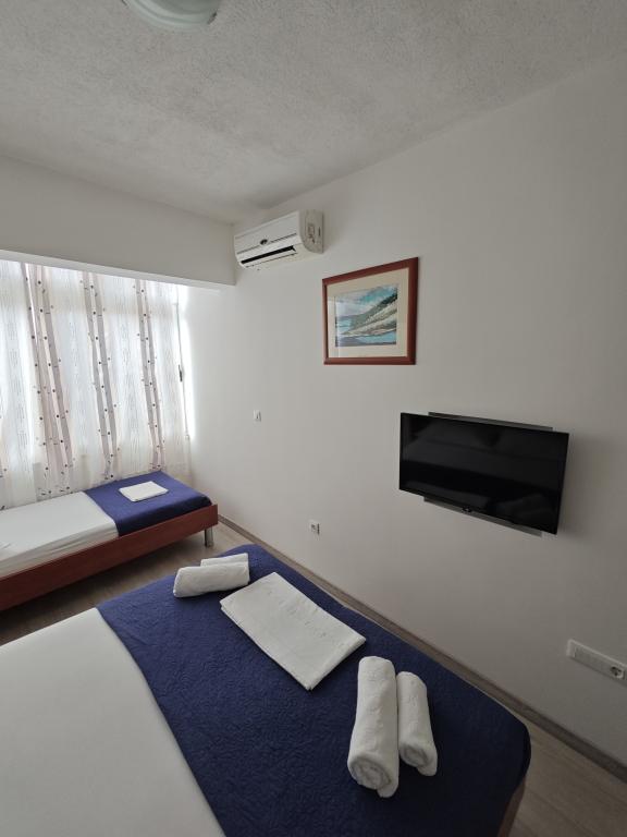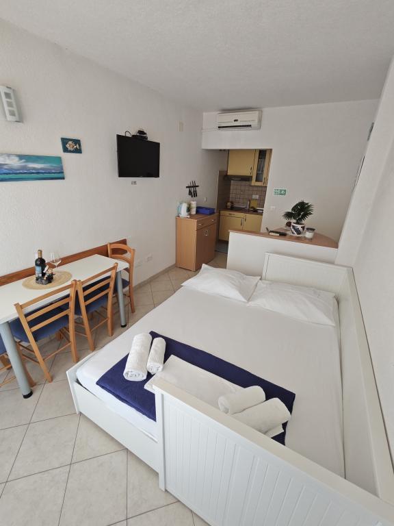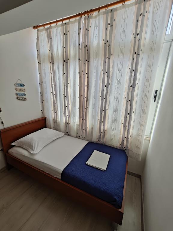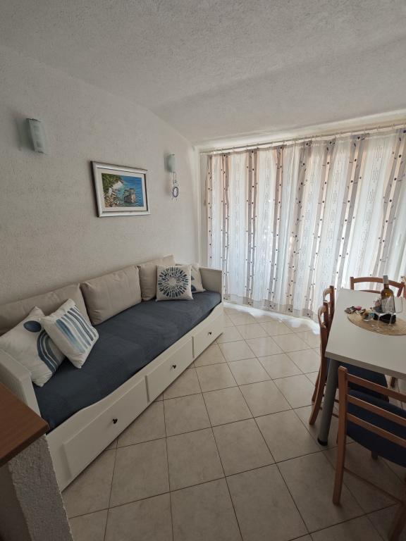Apartament Blue Lagoon – Twój mały raj nad morzem! ️️ Witamy w Blue Lagoon, uroczym dwupiętrowym apartamencie idealnie położonym zaledwie 30 metrów od głównej plaży i promenady, gdzie można cieszyć się nadmorskimi restauracjami, kawiarniami i pięknymi spacerami. Najbliższy sklep znajduje się zaledwie 20 metrów, a poczta zaledwie 50 metrów od obiektu – wszystko, czego potrzebujesz, jest w zasięgu ręki! Ten przytulny apartament pomieści 3+1 gości, co czyni go idealnym dla par, rodzin lub małej grupy przyjaciół. Układ pomieszczeń: Parter: sypialnia, łazienka z prysznicem i toaletą. Pierwsze piętro: jasny salon, w pełni wyposażona kuchnia, druga toaleta i balkon z pięknym widokiem. Udogodnienia: Klimatyzacja na obu piętrach Telewizor na obu piętrach Darmowe Wi-Fi w całym apartamencie