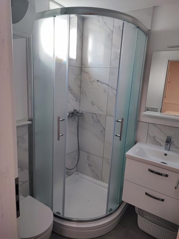 Mieszkanie jest piękne, czyste, pięknie urządzone, gospodarze mili i gościnni, zaskoczyli nas pysznym obiadem rybnym, za co z całego serca im dziękujemy Piękne żwirowe plaże, a także kawiarnie znajdują się w bezpośrednim sąsiedztwie apartamentu, zaledwie 2-3 minuty spacerem, a rynek jest dosłownie po drugiej stronie ulicy. Przez całe wakacje nie musieliśmy nawet dotykać samochodu. Na pewno wrócimy do tego apartamentu.