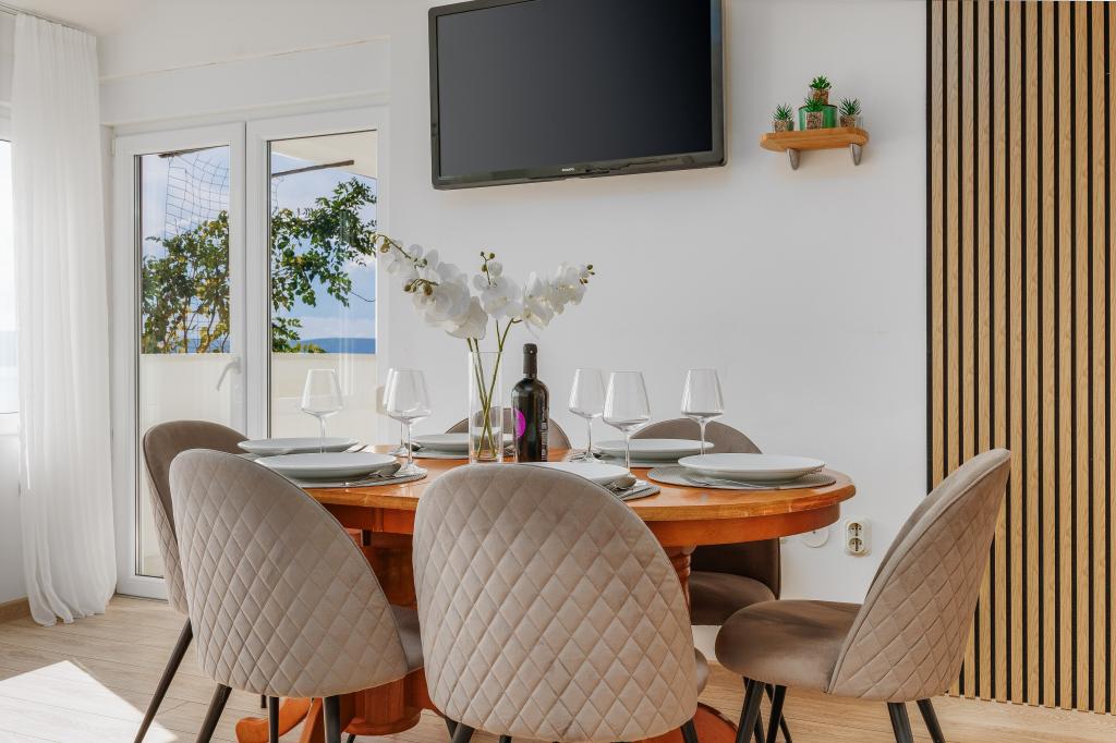 Przeżyj niezapomniane wakacje w sześcioosobowym apartamencie z przepięknym widokiem na Igrane i Morze Adriatyckie! Opis apartamentu: • Trzy oddzielne sypialnie dla maksymalnego komfortu. • W pełni wyposażona kuchnia do przygotowywania ulubionych posiłków. • Przestronny salon z widokiem na morze i miasto. • Dwie nowoczesne łazienki. • Duży balkon, idealny na relaks o wschodzie słońca. • Telewizor, Wi-Fi i klimatyzacja dla przyjemnego pobytu. • Prywatny parking przed domem. Położony w malowniczym miasteczku Igrane, znanym z pięknych plaż, zabytków i bogatej oferty turystycznej. Zarezerwuj pobyt i ciesz się spokojem, przyrodą i pięknem Riwiery Makarskiej!