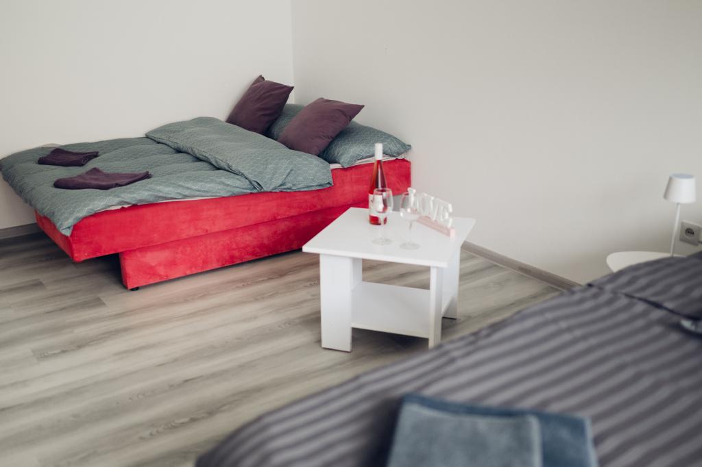 Apartament Marija Ilok „odrodził się” w ramach Winiarni Marija Ilok w duchu tradycji Ilok. W związku z tym pojemność zakwaterowania to apartament trzygwiazdkowy, który obejmuje osobne wejście do apartamentu, kuchnię, pokój dzienny, łazienkę, oddzielną toaletę, taras, 3 sypialnie, 6 głównych łóżek, 4 dodatkowe łóżka i jest rozmieszczony w taki sposób, aby Wnętrze każdego z 3 pokoi w prosty sposób opowiada historię Iloka w piwnicy i winnicy Marija Ilok. Każdy pokój ozdobiony jest obrazami przedstawiającymi Dunaj, kościół Ilok i krajobraz Ilok. Zgodnie ze standardami dzisiejszej turystyki, Apartament Marija Ilok jest odpowiedni dla nowoczesnych potrzeb i komfortu na rodzinne wakacje. Apartament Marija to wolnostojący budynek (dom) o powierzchni 120 m2, z parkingiem strzeżonym oraz przestronnym podwórkiem i tarasem. Przestrzeń wypełniona jest przytulnością i wygodą. Zarezerwuj pobyt w apartamencie i rozkoszuj się krajobrazem Iloku, spacerami wzdłuż Dunaju, ilockimi przysmakami i lampką dobrego wina z Piwnicy Marija Ilok