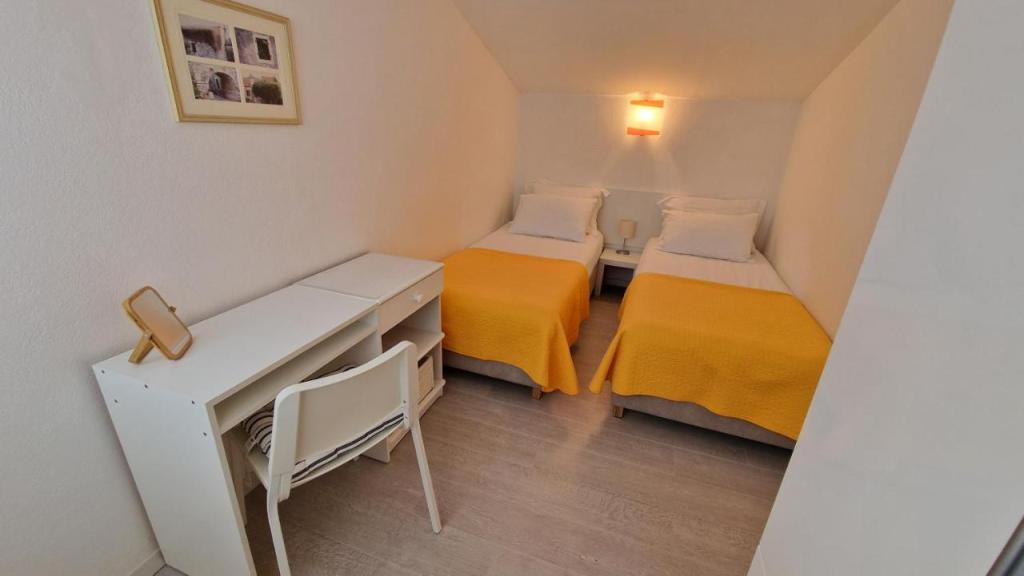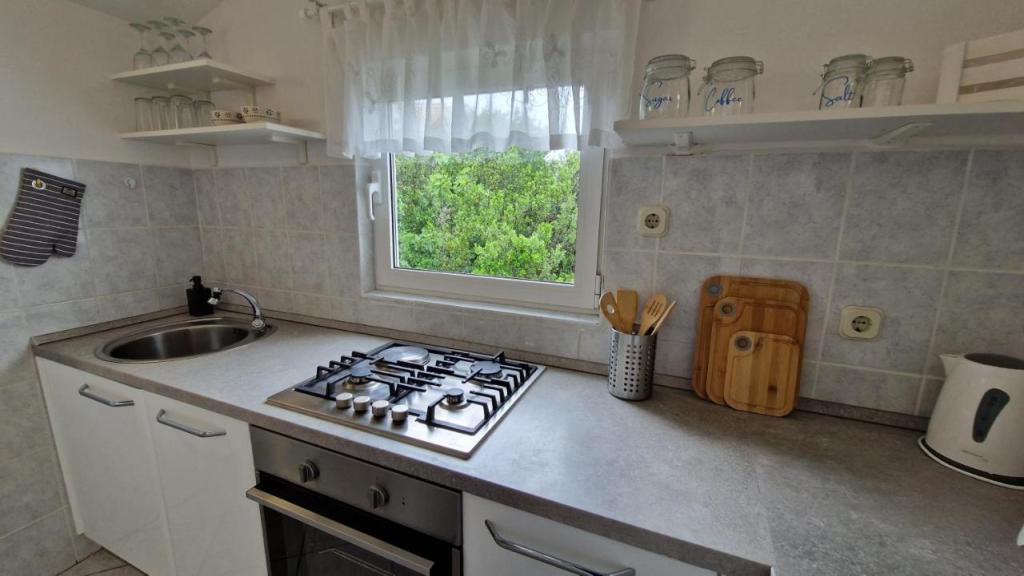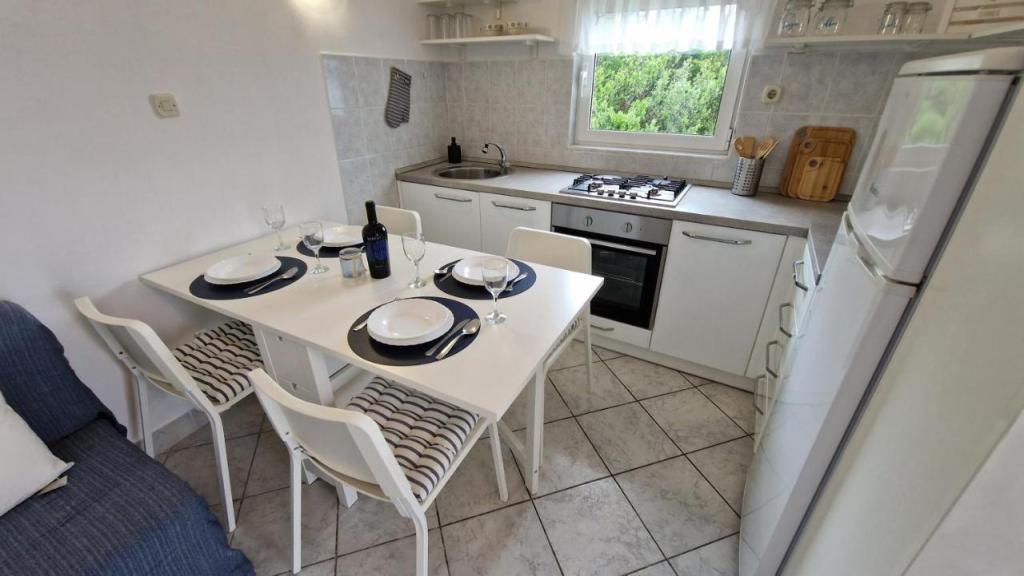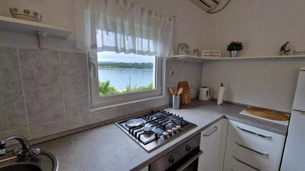 Ciesz się wakacjami zaledwie 5 metrów od morza, w spokojnej zatoce Knež na wyspie Iž. Ten komfortowy apartament z dwiema sypialniami oferuje przestronny taras z pięknym widokiem na morze i archipelag zadarski – idealny na poranną kawę lub wieczorny relaks. Apartament jest klimatyzowany i w pełni wyposażony, aby zapewnić komfortowy pobyt: kuchnia ze wszystkimi niezbędnymi udogodnieniami, pralka, bezpłatne Wi-Fi, telewizor, biurko, komfortowy salon i prywatna łazienka. Do dyspozycji Gości jest również bezpłatny parking w pobliżu. Na tylnym tarasie dostępny jest grill. Położony w cichej i relaksującej okolicy, apartament jest idealnym wyborem dla rodzin i każdego, kto szuka spokojnego wypoczynku nad krystalicznie czystym morzem.