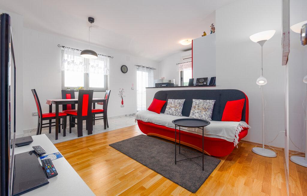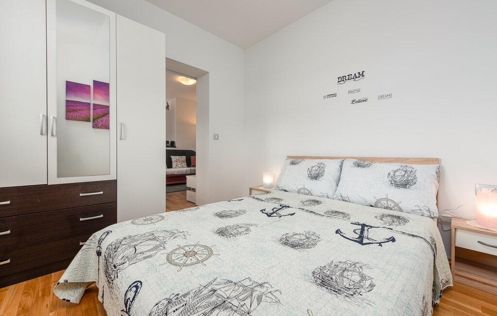 Czas na zasłużony odpoczynek i relaks na słonecznej wyspie Iž – apartament Sea Whisper. Idealny na spokojny, rodzinny wypoczynek, z pięknymi plażami, krystalicznie czystym morzem i doskonałą ofertą dalmatyńskiej kuchni. Ciesz się poranną kawą lub wieczornym zachodem słońca w apartamencie z tarasem, z którego roztacza się zapierający dech w piersiach widok na morze i okolicę. Widoczna jest wyspa Ugljan, a w oddali Velebit i wyspa Ždrelac. W pełni wyposażona kuchnia ze zmywarką, kuchenką mikrofalową, drobnym sprzętem AGD – tosterem, czajnikiem, wyciskarką do cytrusów, sypialnia z łóżkiem małżeńskim, szafą, stolikami nocnymi i lampką stołową. W salonie znajduje się stół, krzesła, duży telewizor LCD z programami Max TV i Wi-Fi, klimatyzacja, sofa oraz łazienka z prysznicem, sejf, pościel i ręczniki. Odległość od plaży wynosi 3-5 minut spacerem. Okolica sprzyja jeździe na rowerze, joggingowi i spacerom po wyspie – dom otoczony jest zielenią, a bezpłatny prywatny parking jest bezpłatny. Mówię po angielsku i chorwacku. Połączenie z Zadarem zapewnia łódź AnaMarija, katamaran i prom. Na wyspie znajdują się restauracje z najlepszymi winami, pysznym jedzeniem, rybami, mięsem, pizzą, lodami i ciastami dla smakoszy, 3 sklepy spożywcze, sklep z pamiątkami, pogotowie ratunkowe, bankomat i poczta. Zwierzęta nie są dozwolone. Palenie w apartamencie jest zabronione, z wyjątkiem tarasu. Witamy drodzy Goście na spokojnej i relaksującej wyspie.
