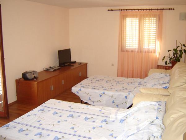 Dom położony jest w zacisznym miejscu, zaledwie 150 metrów od morza, centrum i sklepu. Przy drzwiach domu jest dostęp samochodem i parking jest na podwórku. Nowocześnie wyposażone apartamenty ze wszystkimi niezbędnymi udogodnieniami zapewniającymi przyjemny pobyt i miłe wakacje. Istnieją trzy oddzielne apartamenty i większa firma. Dwa apartamenty są dwupokojowe z kuchnią i pokojem dziennym (A-1 i A-2), natomiast trzecie (A-3) trzy-osobowe mieszkanie. Dla Twojego pojazdu bezpłatny parking na podwórku.