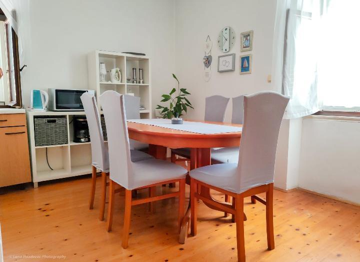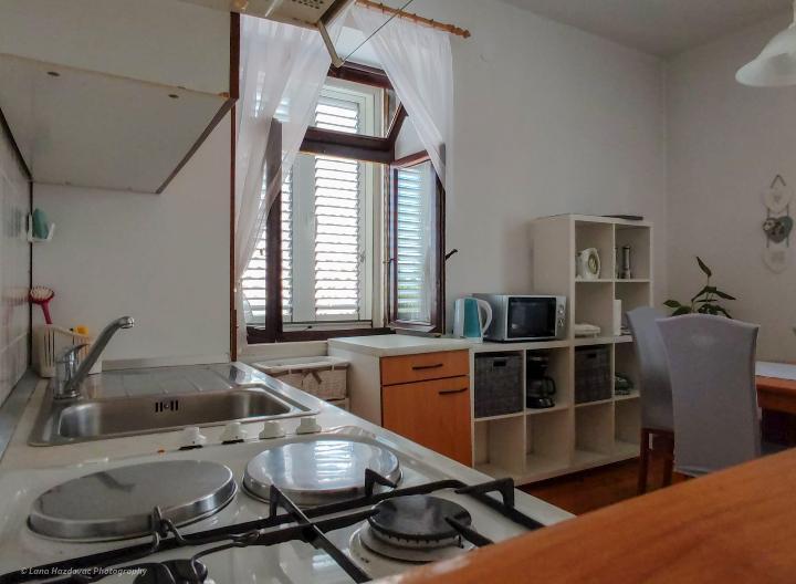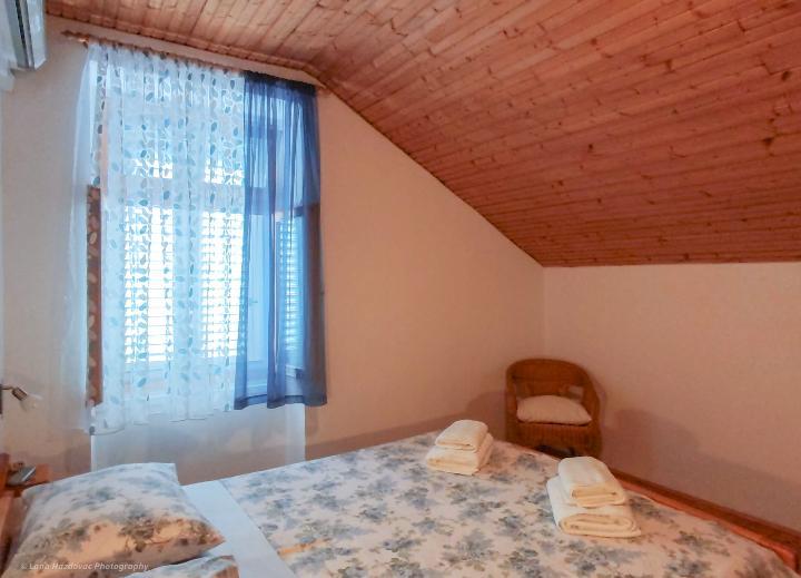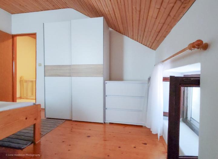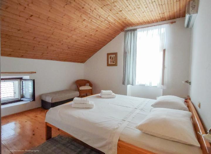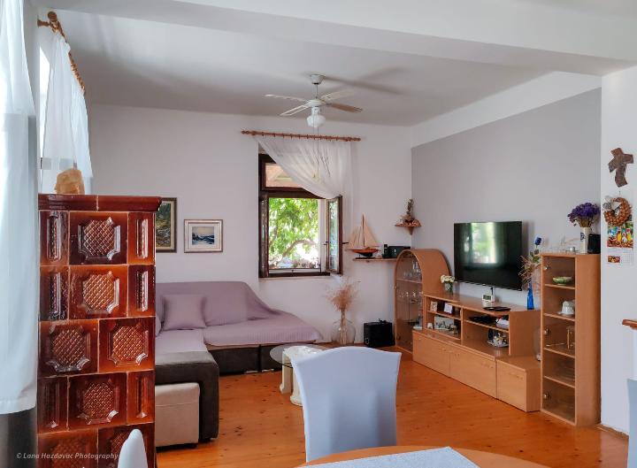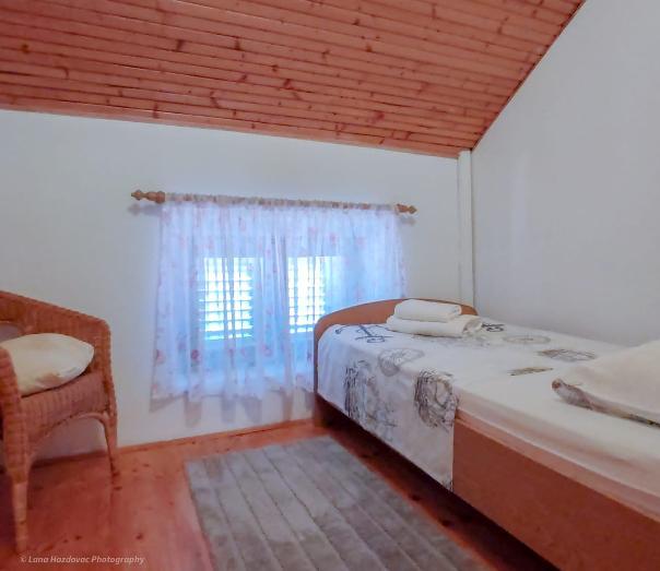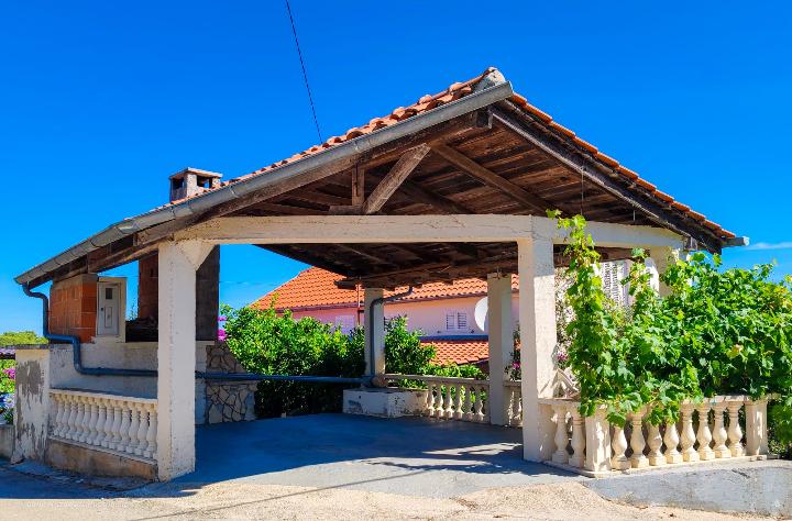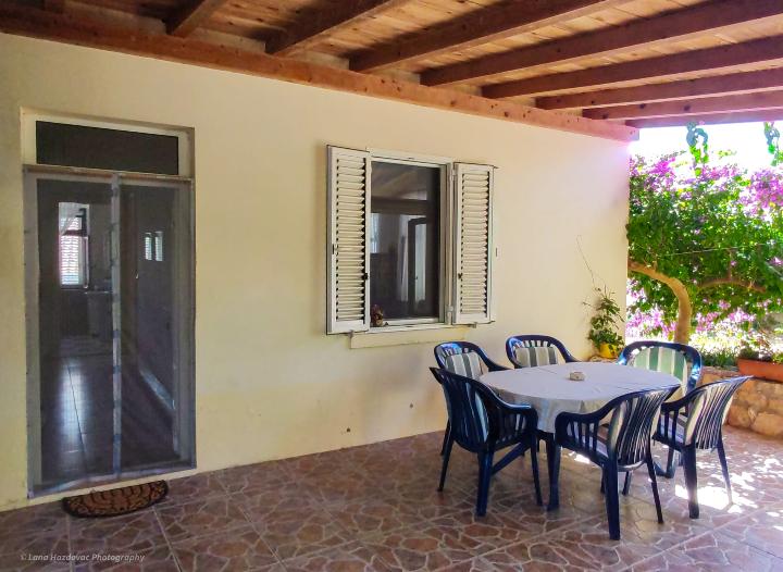 Dom Branka to odnowiony stary dom z kamienia, jest przytulny i wygodny dla pięcioosobowej rodziny. Dom jest budynkiem parterowym, w górnej części znajdują się trzy wygodne sypialnie oraz toaleta z umywalką, na parterze kuchnia z jadalnią, salon oraz łazienka. Przed wejściem do domu znajduje się prywatny parking oraz duży taras - dziedziniec - i miejsce na ognisko - grill. Plaże na wyspie Iž są kamieniste, piaszczyste i betonowe. Jeśli gość ma łódź, właściciel domu może zapewnić bezpłatne miejsce do cumowania, gość nie płaci podatku pobytowego w cenie domu.