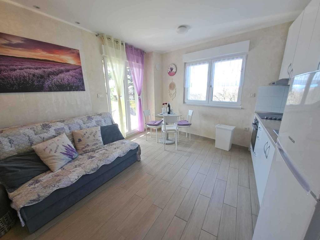 Nowe mieszkanie nad morzem, 4*, Jadranovo, Kvarner, Chorwacja Witamy w pięknym i kompletnym nowym apartamencie nad morzem! Apartament Lavanda w zatoce Kvarner (Chorwacja) znajduje się w spokojnej miejscowości Jadranovo, 8 km od Crikvenicy, 12 km od wyspy Krk i 25 km od miasta Rijeka. Mieszkanie ma powierzchnię 40 m2, składa się z przedpokoju, sypialni, łazienki (z pralką), salonu z kuchnią oraz dwóch balkonów (jeden z widokiem na morze). W kuchni znajduje się lodówka z zamrażarką, ekspres do kawy, czajnik, kuchenka z piekarnikiem, ręczniki kuchenne i wszystko, co potrzebne do gotowania. W sypialni znajduje się podwójne łóżko (160x200cm). W salonie znajduje się sofa (wymiary 160x200 cm). Sofę można rozłożyć i jest bardzo wygodna. Mieszkanie znajduje się na 1 piętrze domu. Mieszkanie posiada klimatyzację (wliczoną w cenę), TV/SAT oraz bezpłatne WI-FI. 5 minut spacerem do pierwszej plaży, 10 minut spacerem do centrum Jadranovo. Odległość do pierwszej plaży wynosi 350 metrów.