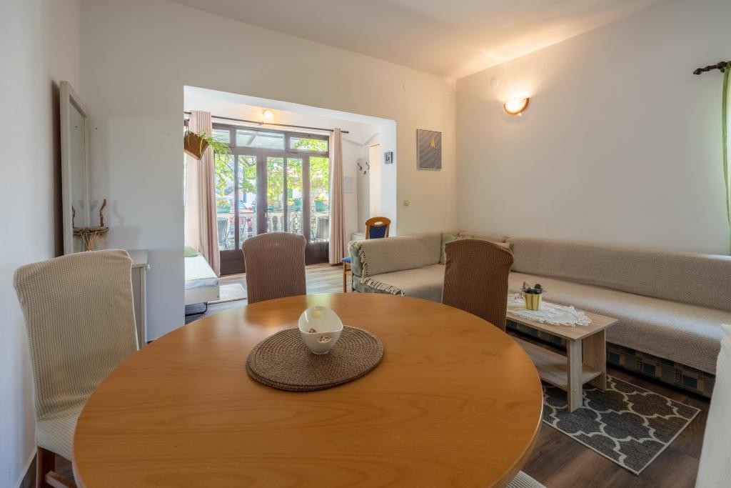Klimatyzowany apartament z 2 balkonami, przy cichej ustronnej ulicy, położony w małej wiosce rybackiej Jadranovo. Do mieszkania przynależy ogród, miejsce na grilla, a także WI FI i parking. Mieszkanie posiada dwa balkony lub tarasy, 1 sypialnię, salon, kuchnię i toaletę. Masz 10 minut spacerem do najbliższej plaży i 15 minut spacerem do drugiej. Druga plaża jest również dostępna samochodem w 2 minuty, a masz bezpłatny parking tuż przy plaży.