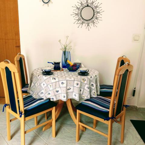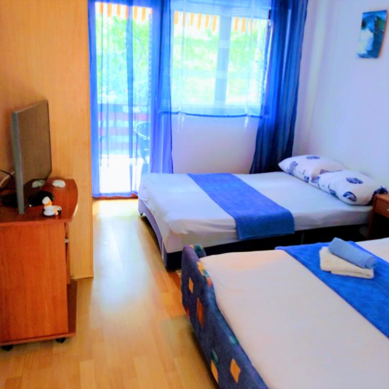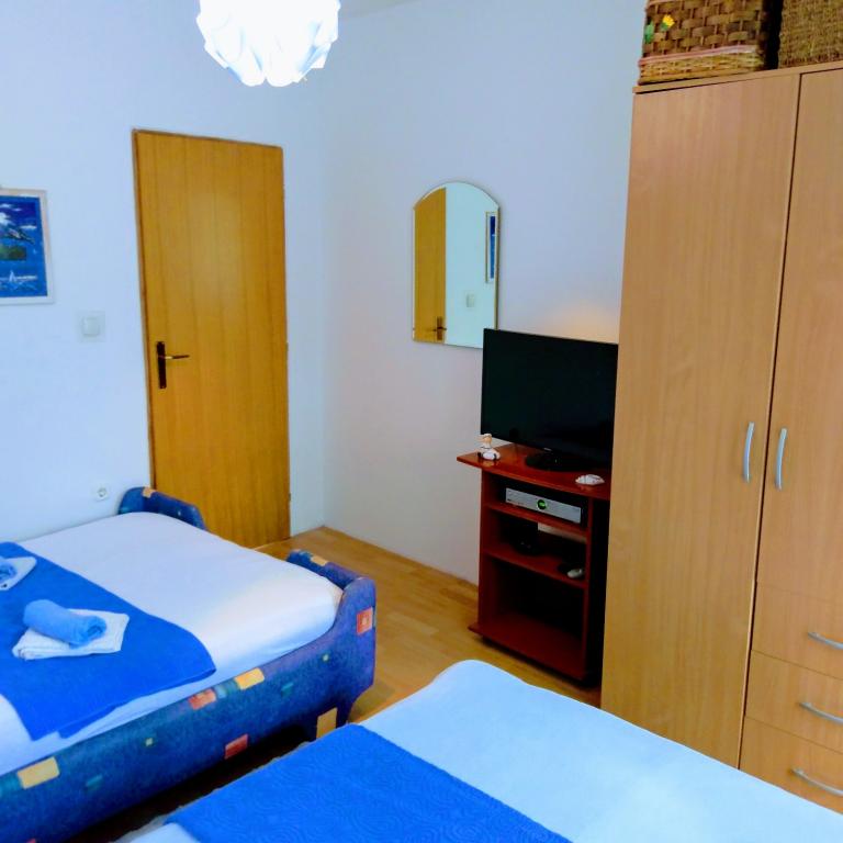 Nowoczesne iw pełni wyposażone apartamenty, otoczone zielenią. Apartamenty znajdują się na piętrze domu rodzinnego. Bliskość rynku. Parking strzeżony. Właściciel mieszka na parterze i jest zawsze dostępny dla gości. Obiekt znajduje się 10 minut spacerem od dwóch plaż. Do obu plaż nie można dojechać samochodem. Na plażę Havišće prowadzą szerokie kamienne schody prowadzące przez gaj. Korzystanie z wózka dziecięcego na tej plaży nie jest praktyczne. Za zgodą i w razie potrzeby do przechowywania rzeczy można korzystać z garażu znajdującego się na plaży Havišće. Korzystanie z klimatyzacji kosztuje 2 € za dzień, chyba że uzgodniono inaczej.