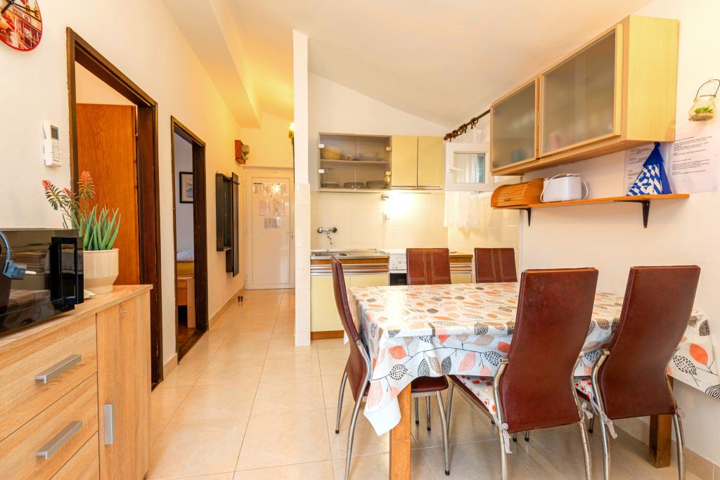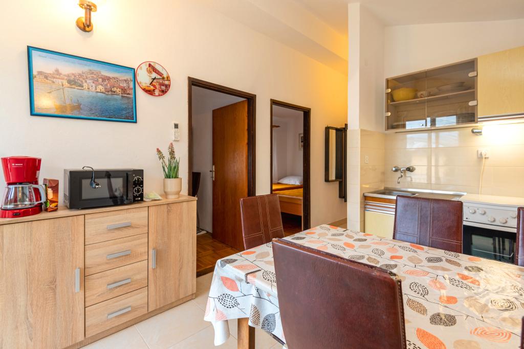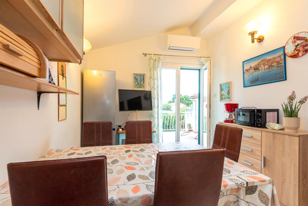 Funkcjonalnie umeblowane i wyposażone mieszkanie wakacyjne w Jadriji koło Szybenika. Mieszkanie ma 35m2 + 17m2 taras. Składa się z dwóch sypialni, w sumie dla 4 osób, kuchni (kuchenka gazowa, lodówka), łazienki i przestronnego tarasu. W apartamencie znajduje się telewizor, klimatyzacja, kuchenka mikrofalowa, ekspres do kawy, bezpłatna sieć WI-FI 5G oraz wszystko, co potrzebne do przyjemnego pobytu. Znajduje się na pierwszym piętrze domu wakacyjnego. Na parterze można korzystać z prysznica na świeżym powietrzu i grilla. Sam apartament znajduje się w cichej okolicy, zaledwie 100 m od plaży Guština uvala i 200 m od drugiej plaży i kawiarni. Sklep i restauracja znajdują się 80 metrów od apartamentu. Bezpłatny parking znajduje się 150 m od apartamentu. Przyjazd gości od godziny 15:00, wyjazd gości do godziny 10:00. Ponieważ Jadrija położona jest pomiędzy Vodicami a Szybenikiem, jest to idealne miejsce na jednodniowe wycieczki do pobliskich miast, które oferują liczne możliwości spędzenia niezapomnianych wakacji, a także wizytę w Parku Narodowym Krka, który jest oddalony od Jadriji o 24 km. Vodice oddalone są od obiektu o 7 km, a Szybenik – o 13 km.