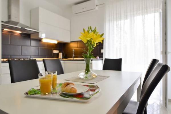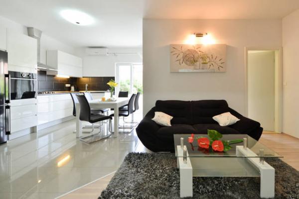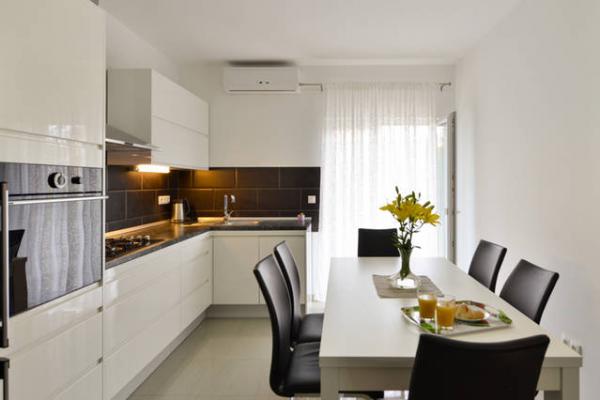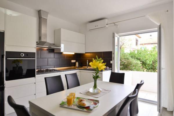 W pełni wyposażone i odnowione mieszkanie w bardzo spokojnej części Jelsy, tylko 5-6 minut spacerem od morza i nabrzeża, a także od rynku, banku, poczty, straganów, kawiarni i restauracji. Jest urządzony w nowoczesnym stylu i bardzo wygodny. Składa się z kuchni ze stołem jadalnym, dużego salonu, sypialni z podwójnym łóżkiem 180 x 200, sypialni z dwoma łóżkami 90 x 190 oraz łazienki z prysznicem. Kuchnia w pełni wyposażona w sprzęt AGD tj. zmywarka, mikser, mikser ręczny, czajnik, toster, ekspres do kawy. Salon wyposażony jest w sofę i ambilight SMART TV oraz telewizję satelitarną. Przed apartamentem znajduje się duży taras o powierzchni 35 m2 ze stołem jadalnym i leżakami, otoczony kwiatami, które nadają się do zabawy dla dzieci lub do późnej nocy delektowania się winami Hvar ... Biorąc pod uwagę przestronne podwórko, masz dużą prywatność. Po północnej stronie mieszkania znajduje się balkon, na który można wejść z dużej sypialni. Mieszkanie znajduje się na parterze. Parking na kilka samochodów.