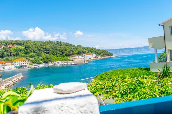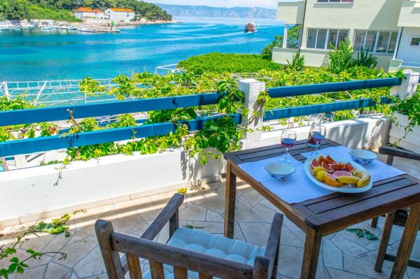 Apartamenty Drinković są nad morzem, powyżej małej plaży z widokiem na port i wyspę Brac. Tylko 2 minuty spacerem do centrum i 5 minut spacerem przez las sosnowy do pierwszego ukrytych plaż.
