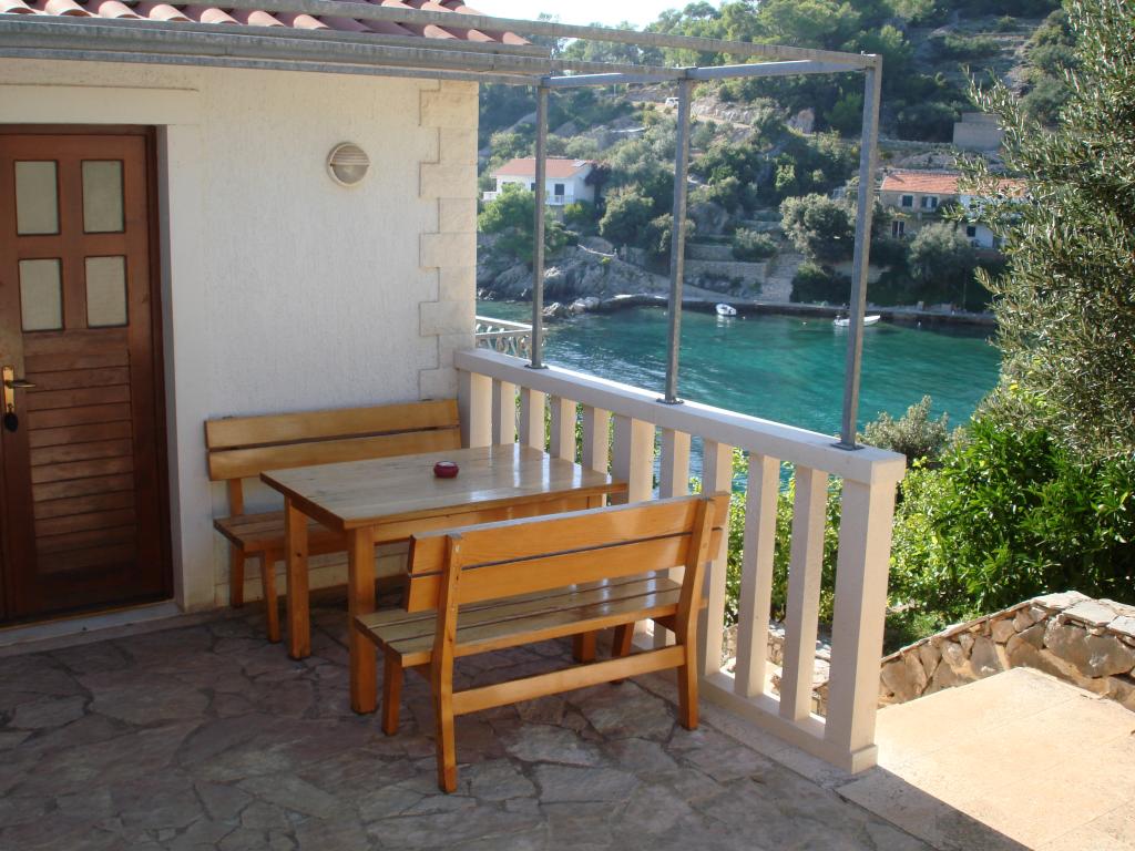 Nowoczesne apartamenty w miejscowości Gdinj nad zatoką Torac. Dom nad brzegiem morza w cichej zatoce, zaledwie 50 m od kamienistej plaży. Obok domu znajduje się betonowa przystań dla łodzi, która może być również używana do pływania i opalania. Apartamenty są zasilane energią elektryczną i ciepłą wodą ze źródeł słonecznych. Goście mogą również korzystać ze wspólnego grilla na drewno i węgiel drzewny. Mały sklep spożywczy z podstawowymi artykułami spożywczymi i napojami oraz mniejsza restauracja znajdują się w sąsiedniej zatoce, zaledwie 300 metrów od hotelu. Trzy zatoki dalej, około 2 km od hotelu, znajduje się restauracja rybna. Do centrum wioski, gdzie znajduje się nieco większy sklep i restauracja jest około 4 km. Najbliższa apteka, apteka i supermarket znajdują się w oddalonej o około 25 km miejscowości Jelsa.