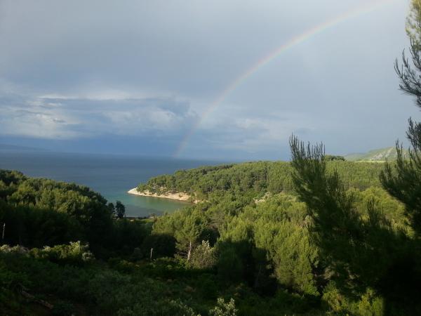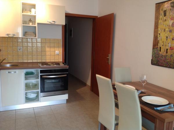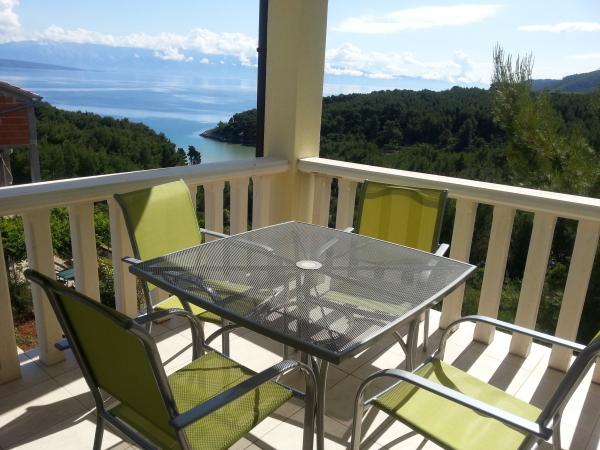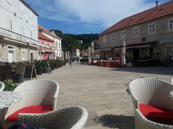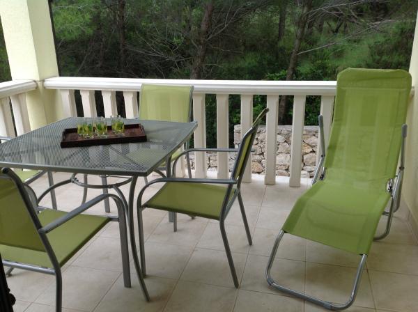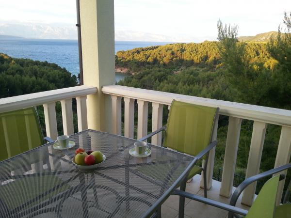 Nowocześnie urządzony apartament znajduje się w nowo wybudowanym budynku, który ma w sumie 5 mieszkań, rozmiar jest 50m2. Obiekt położony jest w spokojnej części miejscowości Jelsa, fasady z widokiem na morze i las sosnowy, a mieszkanie ma piękny widok na zatokę i plażę. Jest w pełni wyposażone, klimatyzowane, posiada miejsce parkingowe, kilka kwadratów przechowywania w piwnicy i kameralny taras (balkon), chronione przed widokiem, zmieszany z sosnami i widokiem na morze. Obiekt położony jest 200 m od pięknej plaży w zatoce kopalni, które można zobaczyć z tarasu, i centrum miasta można dojechać już w 10min spacerem. 100m od budynku znajduje się hotel z dostępem do Internetu.