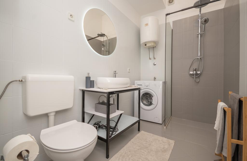 Apartament „B” znajduje się w małym miasteczku Sumpetar Jesenice, niedaleko Splitu i Omiša. Jest oddalony o 20 kroków od kamienistej plaży. Apartament jest częścią domu rodzinnego położonego przy głównej drodze prowadzącej do Dubrownika. Składa się z sypialni, kuchni i salonu, toalety oraz wspólnego balkonu. Jest odpowiedni dla 4 osób. Parking i Wi-Fi są bezpłatne.