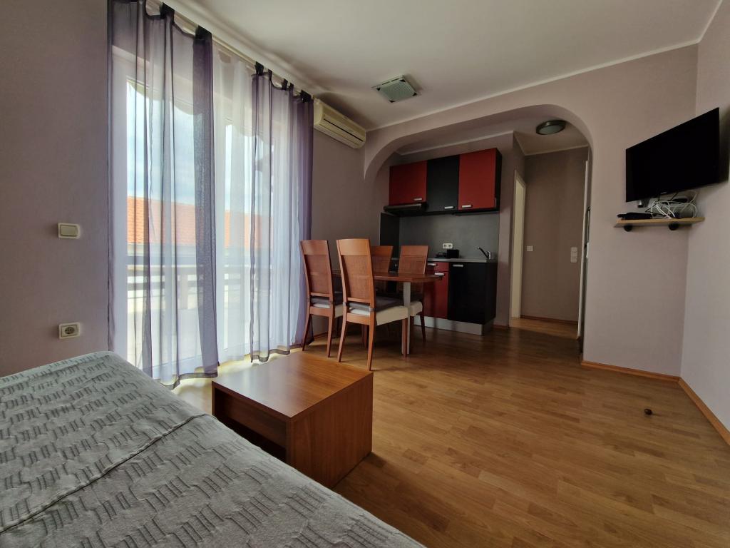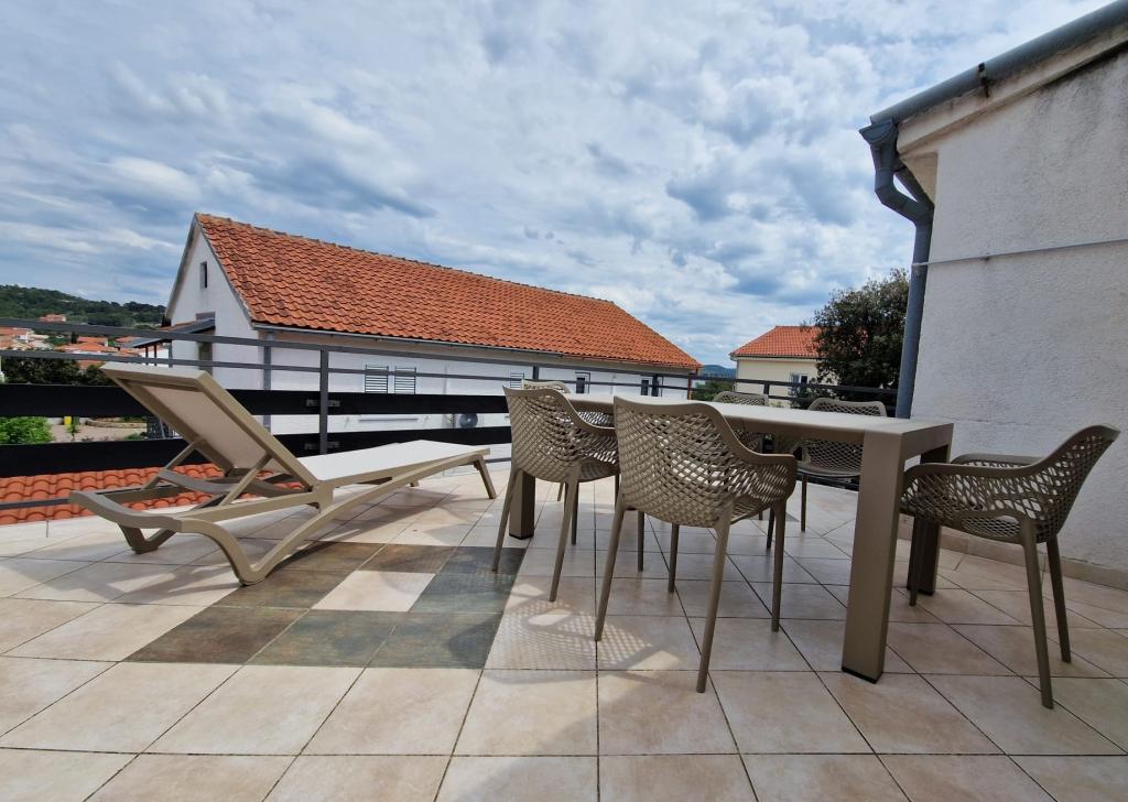 Gustownie urządzone iw pełni wyposażone apartamenty w cichej strefie, w odległości około 400 metrów od plaży i 200 m od centrum. Dom posiada 2 apartamenty, zarówno na pierwszym piętrze. Każdy z nich ma jedną sypialnię salonu (2 z 2 łóżka), kuchnia, łazienka i taras. Goście mają dostęp do pralki, kuchenka mikrofalowa, ekspres do kawy, telewizję satelitarną, internet, grill i parking. Apartamenty są klimatyzowane, bardzo wygodne, z dużymi tarasami i piękne meble. Pobyt w tym domu z pewnością zachwyci was.