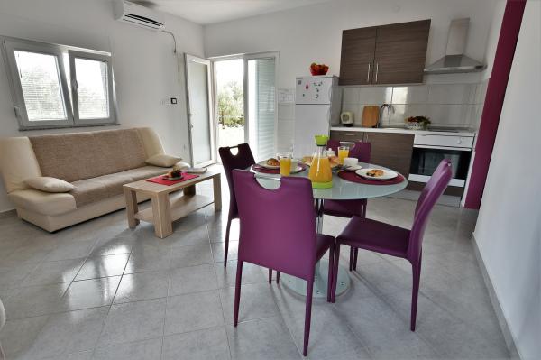 Wspaniały apartament! Przestronne, czyste, schludne, regularnie konserwowane, przyjemne, wystarczy wyposażone ... Pościel, ręczniki i ręczniki kuchenne regularnie zmieniane. Właściciele są bardzo, bardzo przyjazny, pomocny, uśmiechnięty i "nie zakłóca twojej wypoczynkowego ". Lokalizacja jest dobra, zdjęcia na stronie są prawdziwe, tylko w odległości spaceru od plaży jest tylko 200 metrów, ale więcej, około 5 minut spacerem wzdłuż prostej drogi, koła były się tam wkrótce. Ta instalacja rekomendacje, mamy wszystkich przyjaciół, którzy wyjeżdżają na wakacje nad morzem i również inni! Naprawdę, bardzo ładne i przyjemne! Z wydarzeń wieczoru w bardziej spokojny, bardziej "nocnych " trzeba iść gdzie indziej. Na spacery nad morzem i straganów jest bardzo korzystne położenie. Doskonałe mieć rower ze sobą. Ładny jest też droga wzdłuż morza do miasta Tisno, zalecany do spacerów i wycieczek na rowerze. Plaża jest bardzo ładnie urządzone, zacienionych miejscach, są też prysznice i bar. Polecany dla rodzin z dziećmi. Ogólnie rzecz biorąc, byliśmy bardzo zadowoleni z urlopu! Chociaż zazwyczaj nie chodzić kilka razy w tym samym miejscu, na pewno wrócę! Najlepszy urlop!